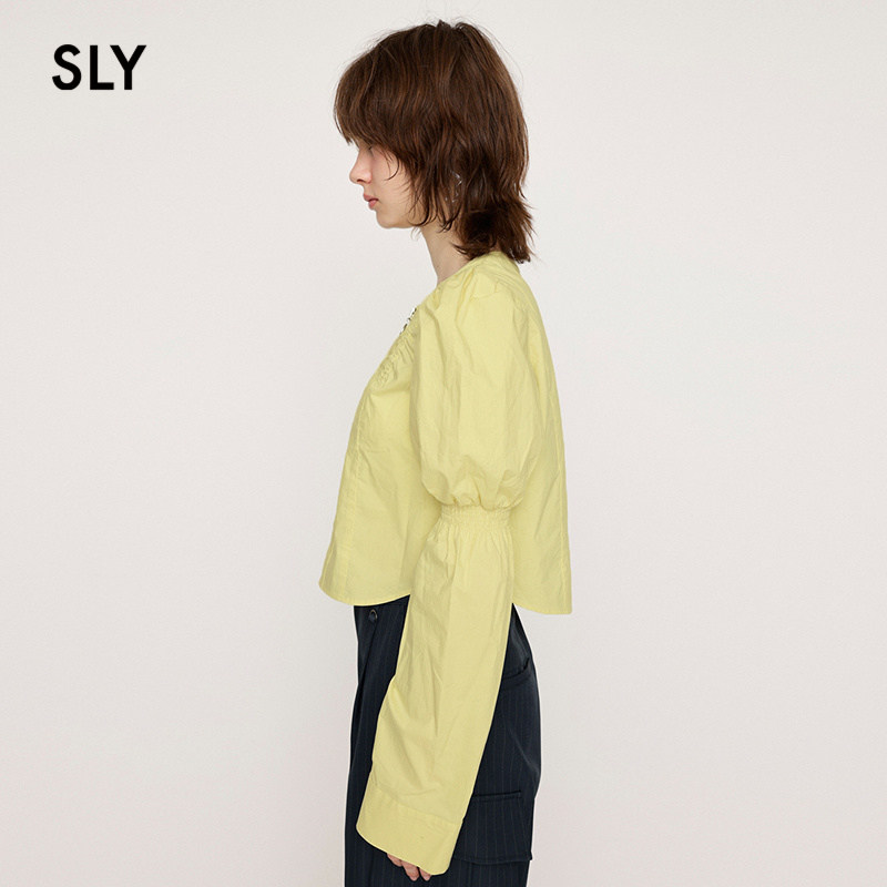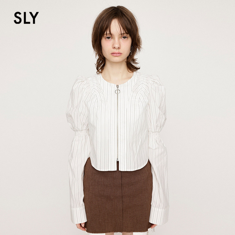 SLY 夏季新品法式优雅打揽羊腿袖春游拉链衬衫030HSR30-1990