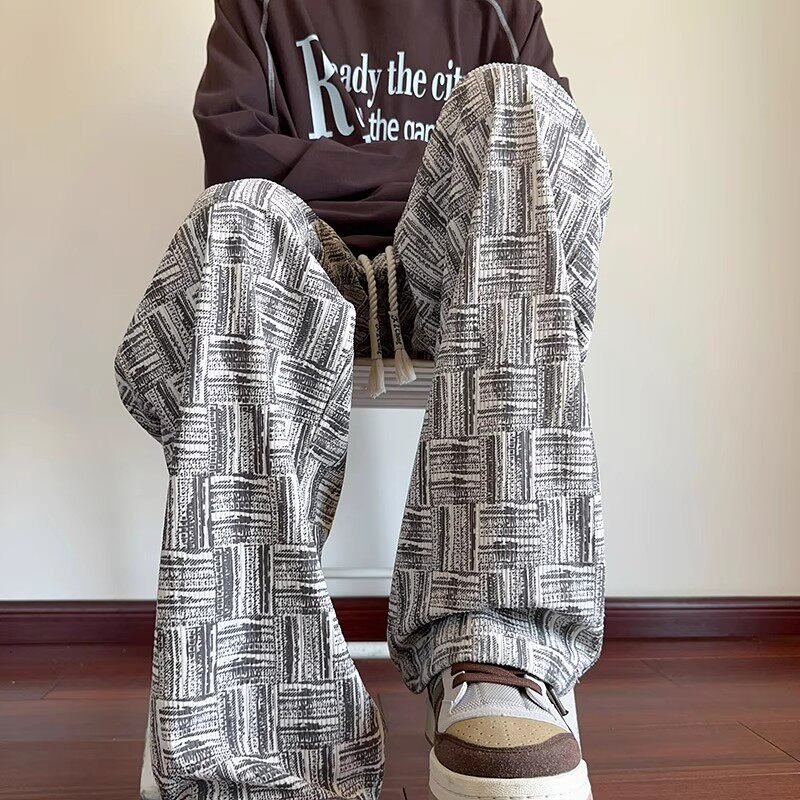 灯芯绒复古休闲卫裤男秋美式提花设计感直筒长裤大码潮牌抽绳裤子
