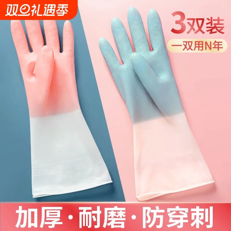 防水耐用手套女新款四季洗碗家务厨房洗衣服橡胶乳胶塑胶防滑耐磨