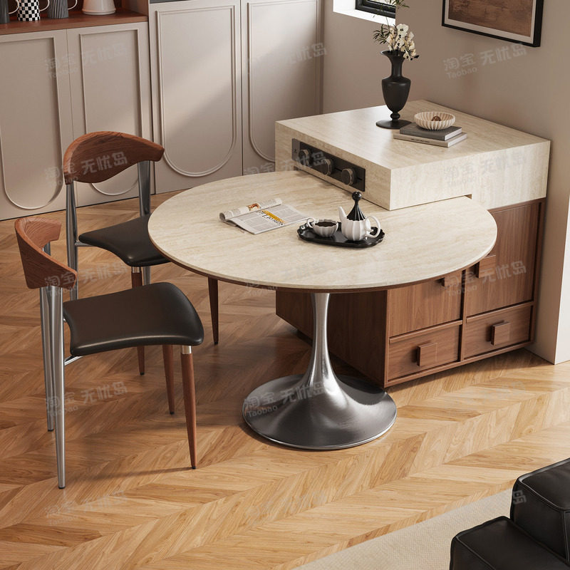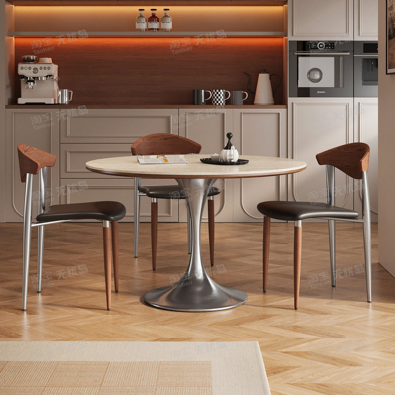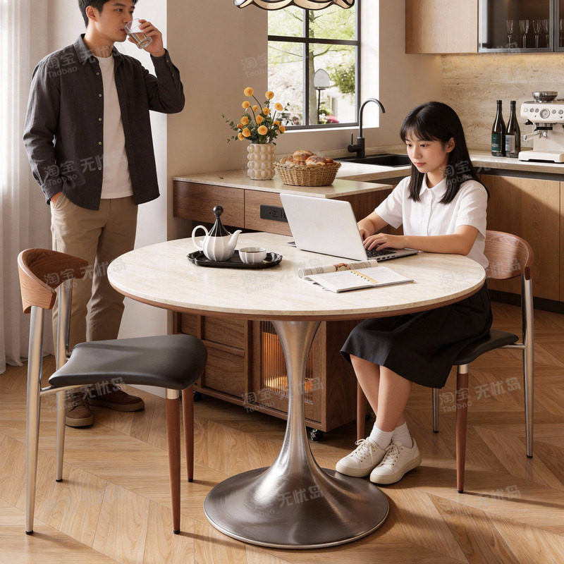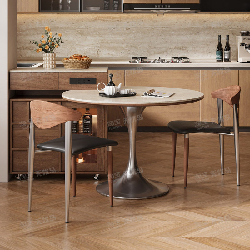 北欧复古简约家用实木岩板餐桌小户型设计师郁金香轻奢圆桌