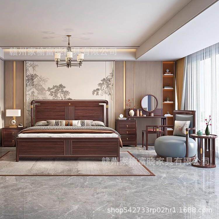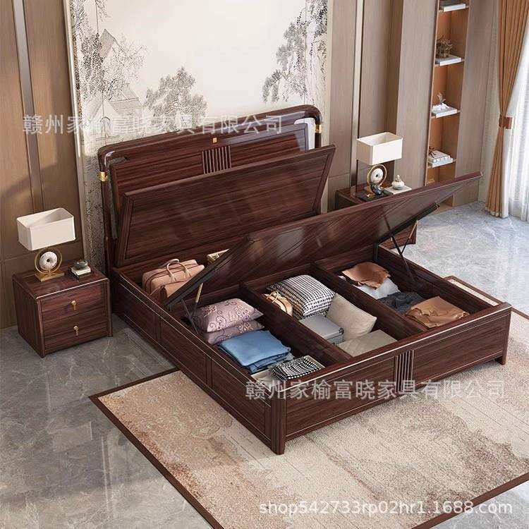 乌金木实木床1.8米双人床别墅轻奢高端家具卧室家用储物大床婚床