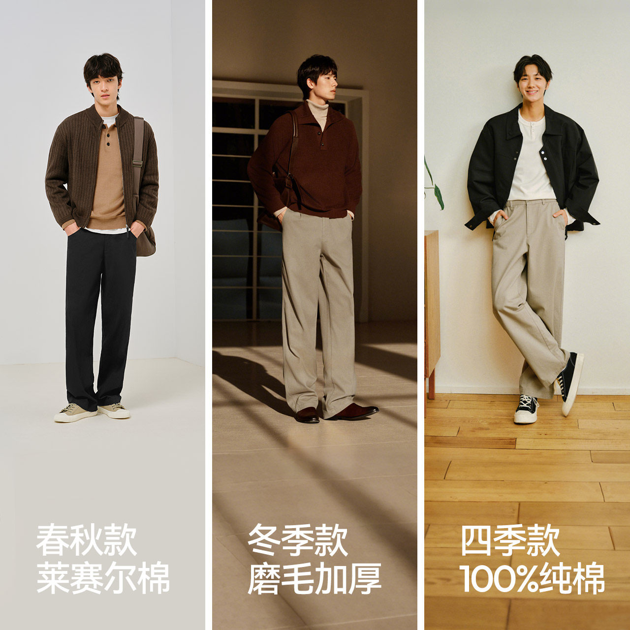 王安宇同款森马宽松直筒裤2025秋冬新款cleanfit裤子百搭休闲裤男