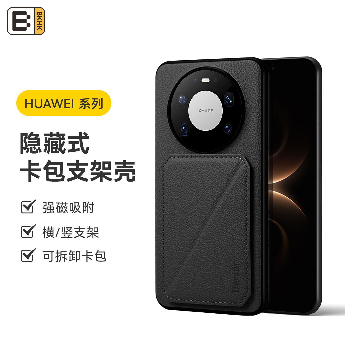 BKHK小牛皮适用华为mate70pro手机壳60por +非凡大师真皮pura70 Ultra保护套磁吸卡包支架保时捷全包防摔外男