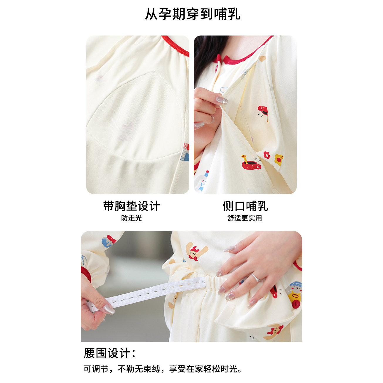 带胸垫奶香风纯棉月子服春秋季产后产妇孕妇睡衣秋冬款哺乳喂奶衣