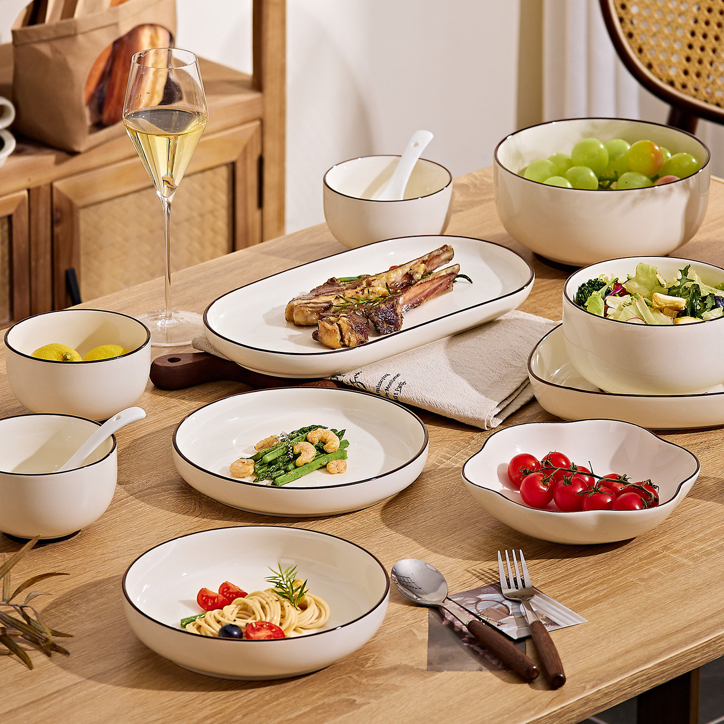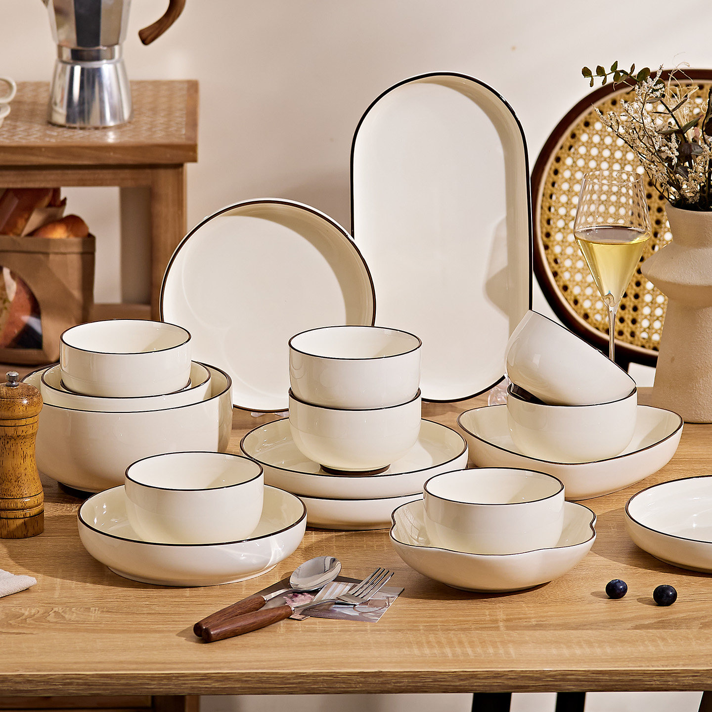 釉下彩餐具套装2025新款高颜值碗碟套装家用奶油风碗盘筷乔迁碗具