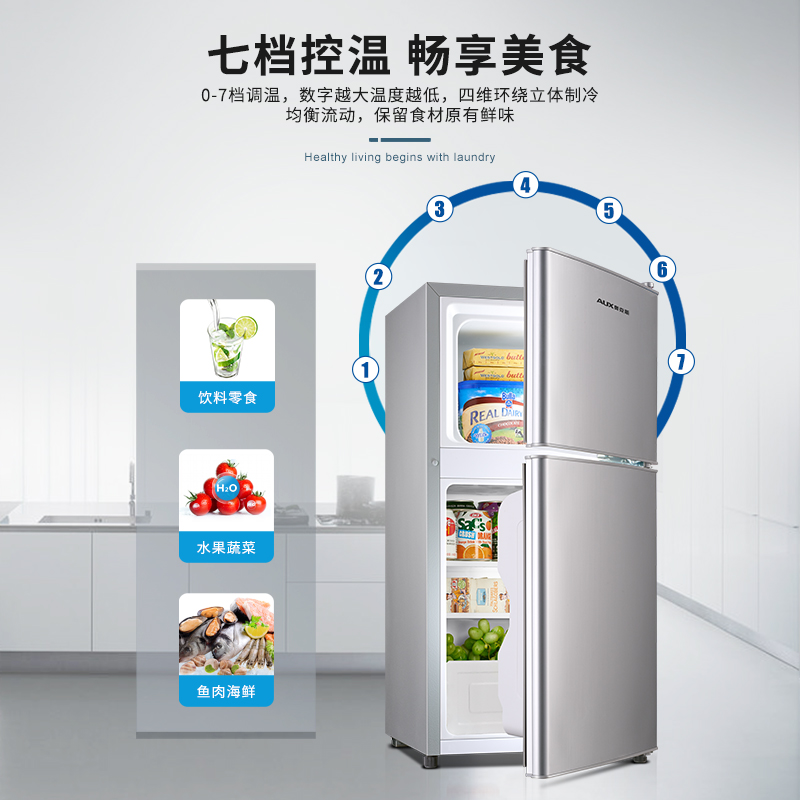 【补贴20%】奥克斯一级能耗150L冰箱家用冷藏冷冻抗菌低噪电冰箱