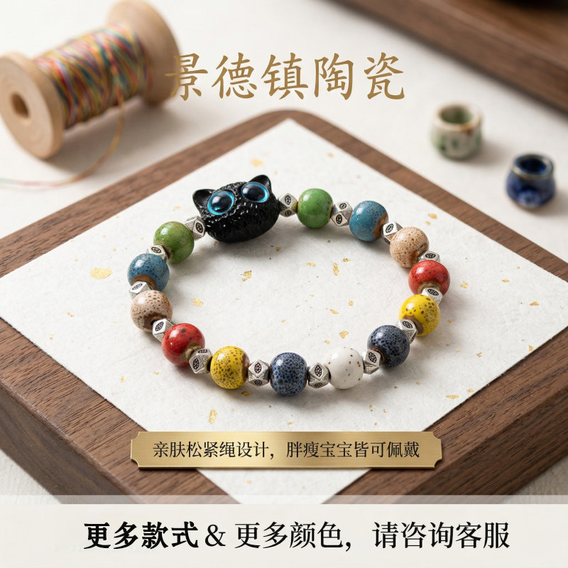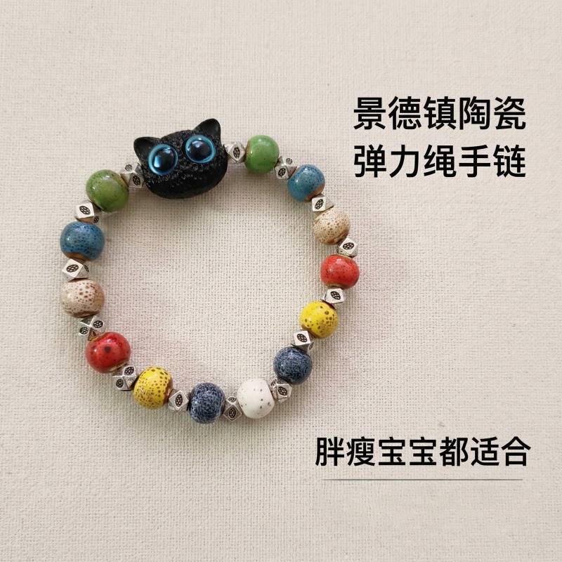 景德镇陶瓷彩珠手串国风礼物小清新女生手链新中式闺蜜饰品可批发