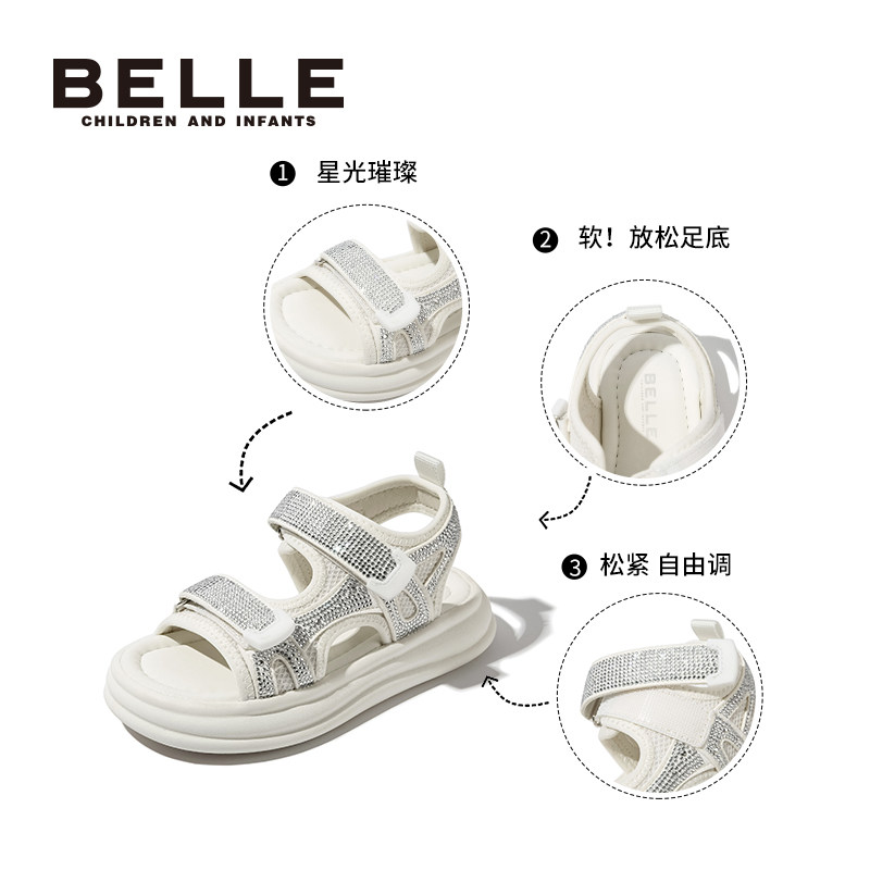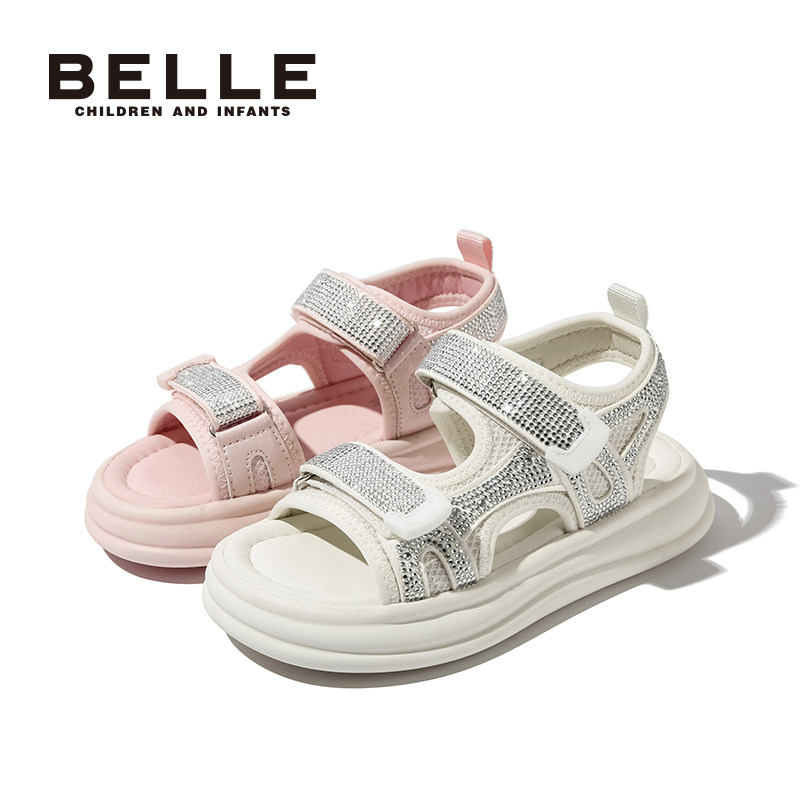 百丽童鞋女童凉鞋2025夏季新款儿童时尚水钻公主鞋中大童沙滩凉鞋