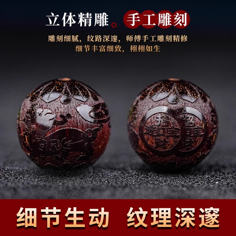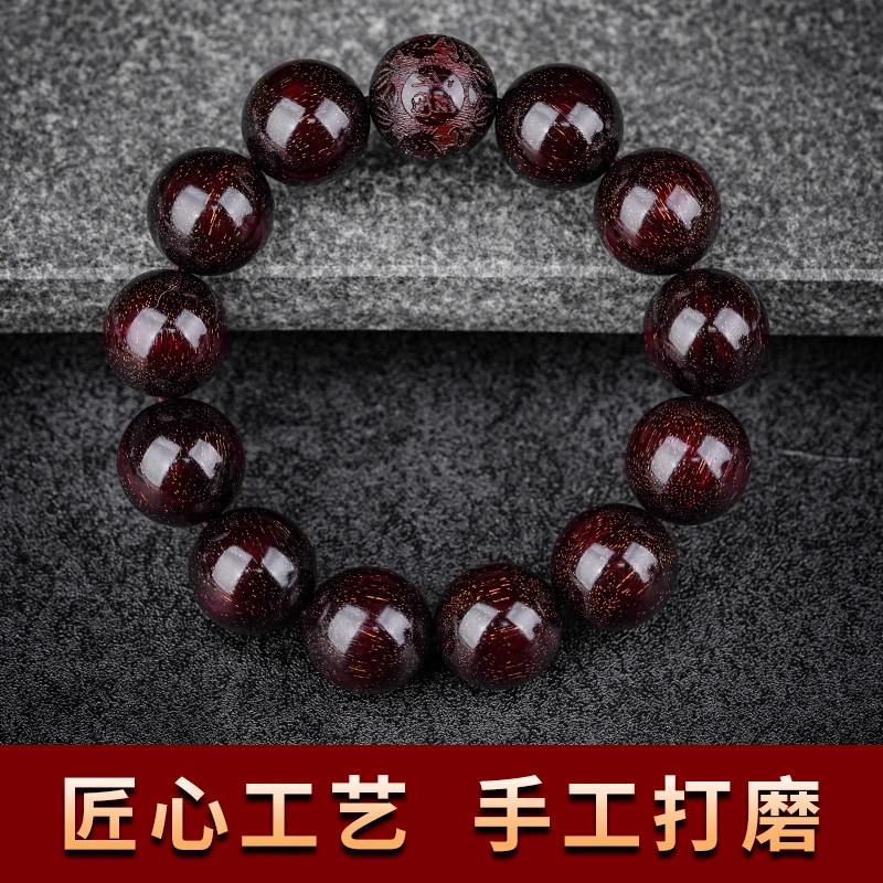 印度小叶紫檀手串檀香木十二生肖20男士文玩盘玩念珠佛珠手链老料