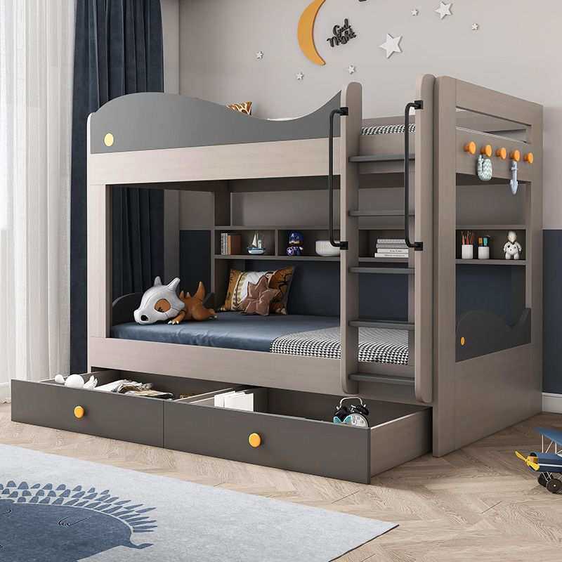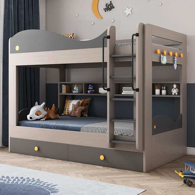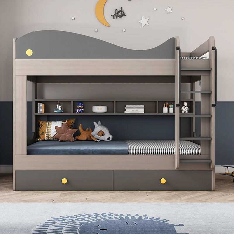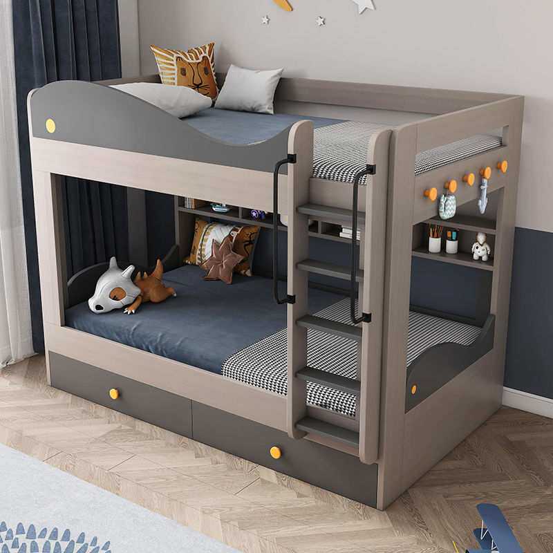 现代儿童简约上下床平行高低床学生上下铺木床上下同宽双层子母床