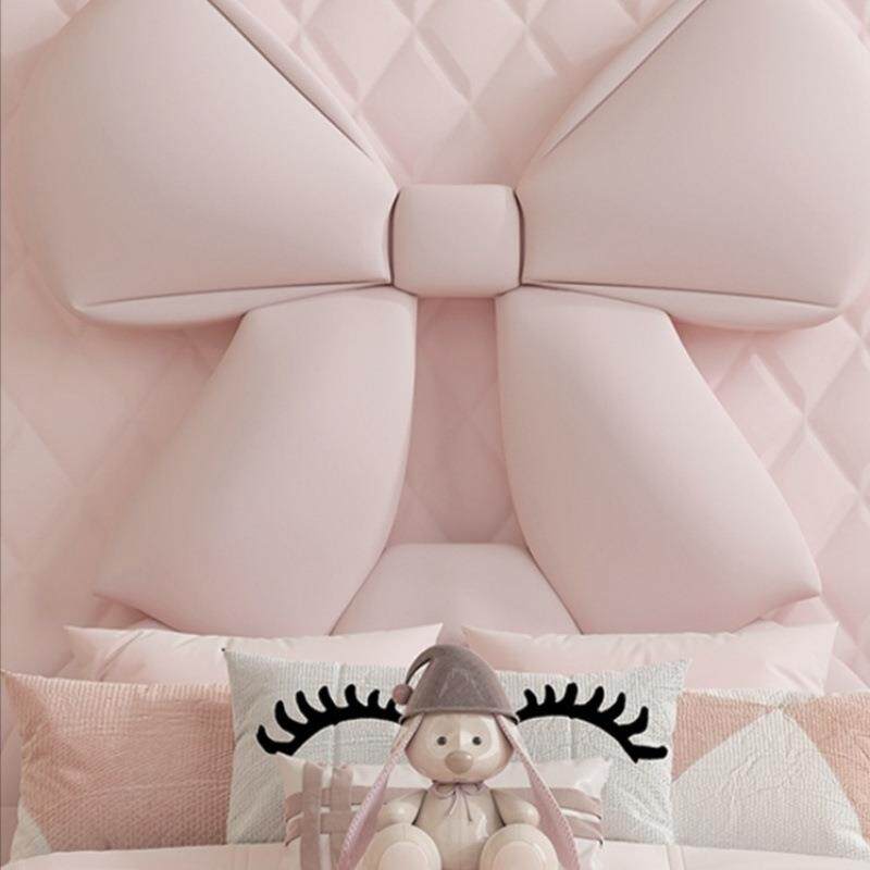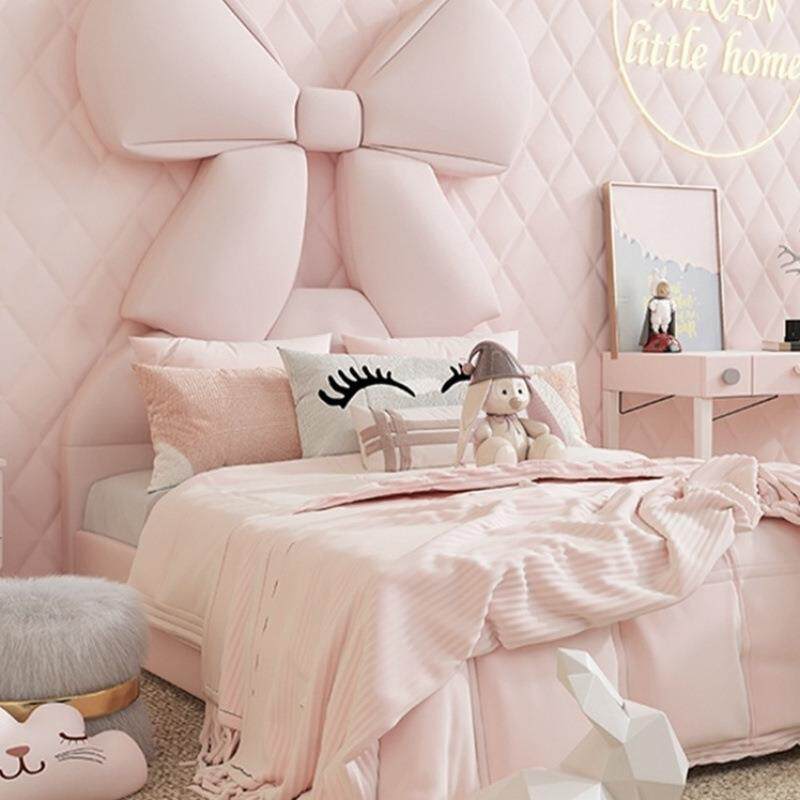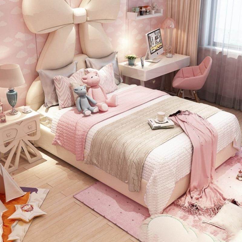 女生皮艺床儿童床女孩卧室韩式少女心蝴蝶结粉白色创意软床公主床