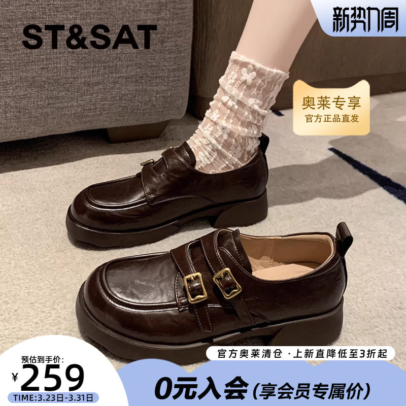 星期六厚底乐福鞋女鞋棕色法式复古2025秋冬新款英伦风小皮鞋单鞋