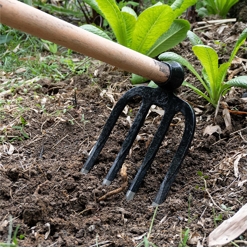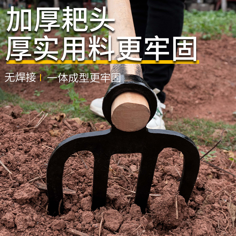 连体钢管柄锻打四齿钉耙扒草铁耙子农具家用平地翻土松土神器耙子