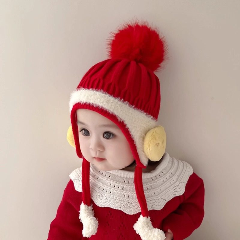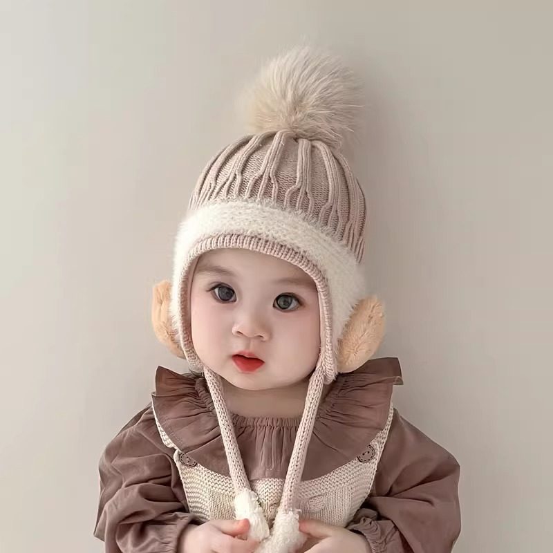 宝宝帽子秋冬季婴儿毛线帽冬帽护耳帽婴幼儿针织帽可爱保暖秋冬款