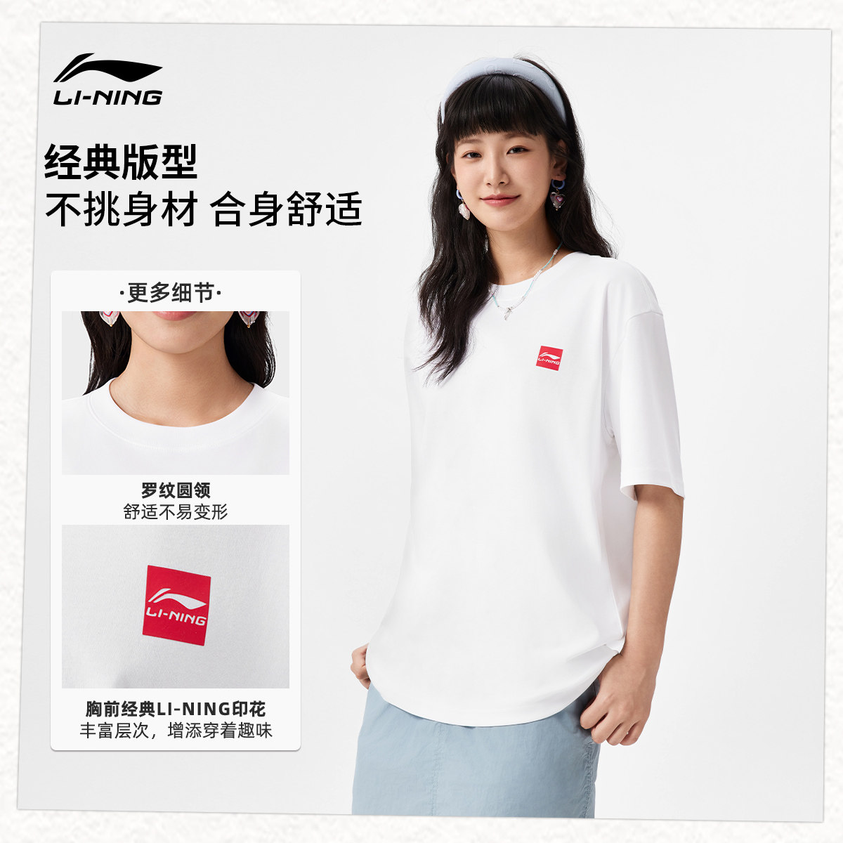 李宁短袖男士官方夏季半袖简约盐系情侣装黑色体恤纯棉运动T恤女