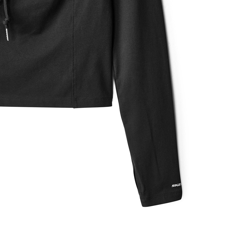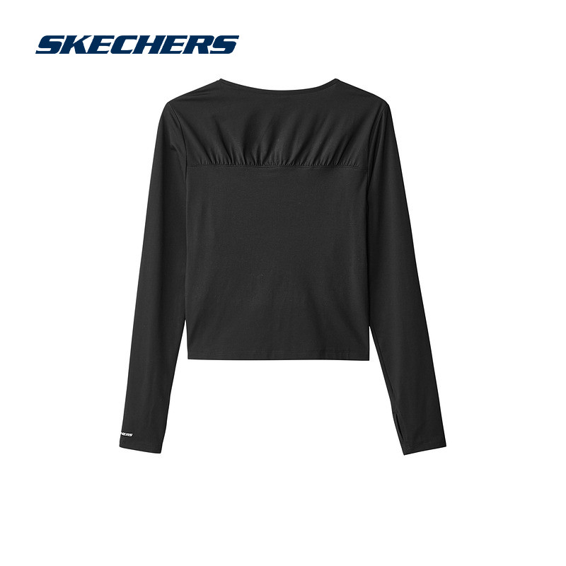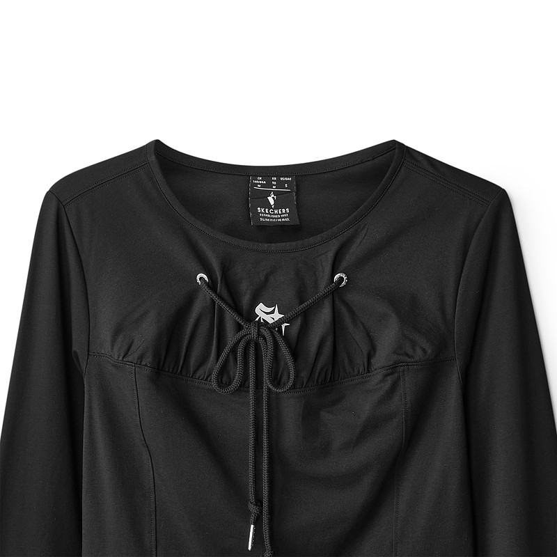 斯凯奇官方outlets2025年夏秋女款圆领修身T恤碳黑色柔软舒适长袖