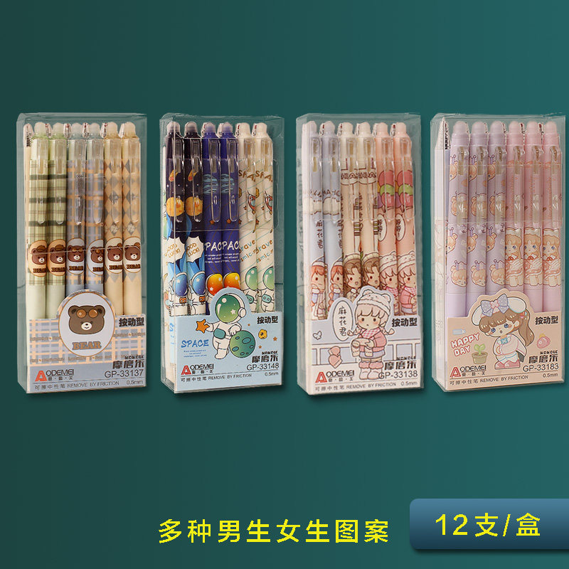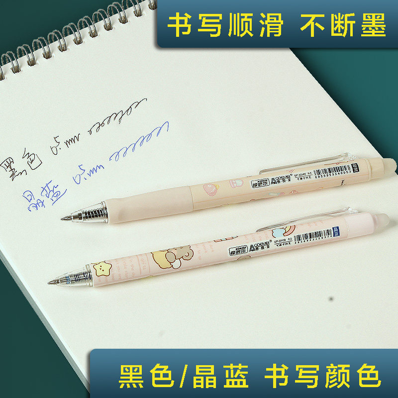 奥德美按动热可擦中性笔晶蓝黑色0.5小学生三年级女生高颜值ST笔