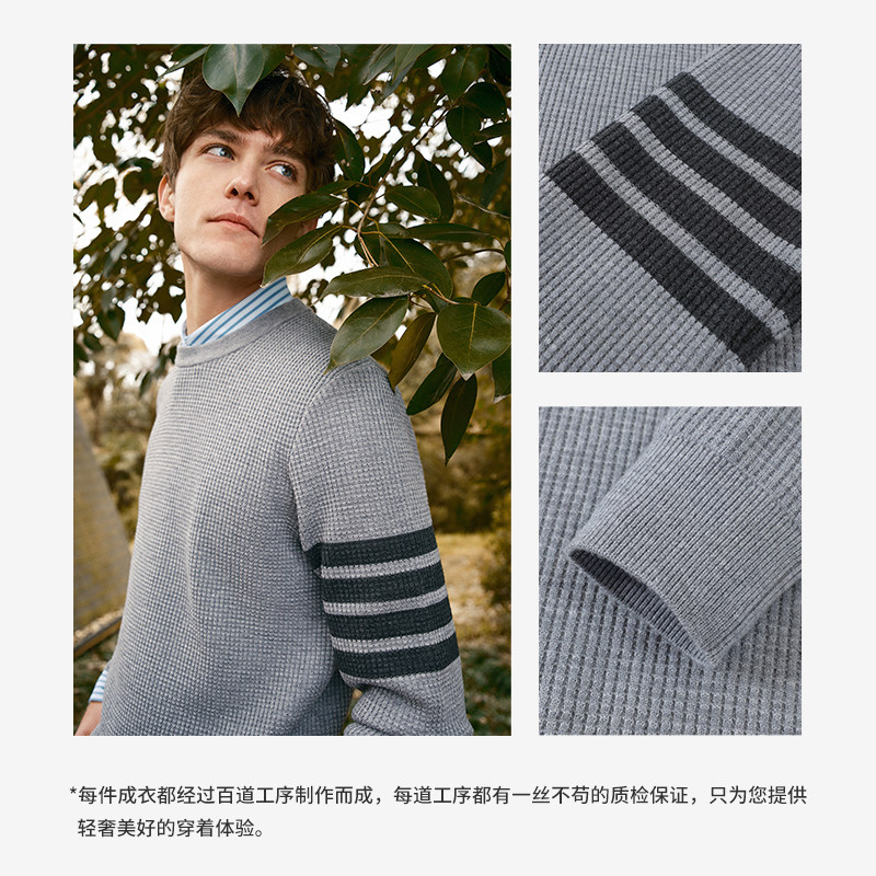 森马毛衫男冬季满版提花针织衫撞色毛衣宽松套头衫百搭提花潮-TK