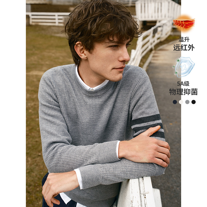 森马毛衫男冬季含羊绒针织衫发热抑菌2025新款基础圆领黑色打底衫