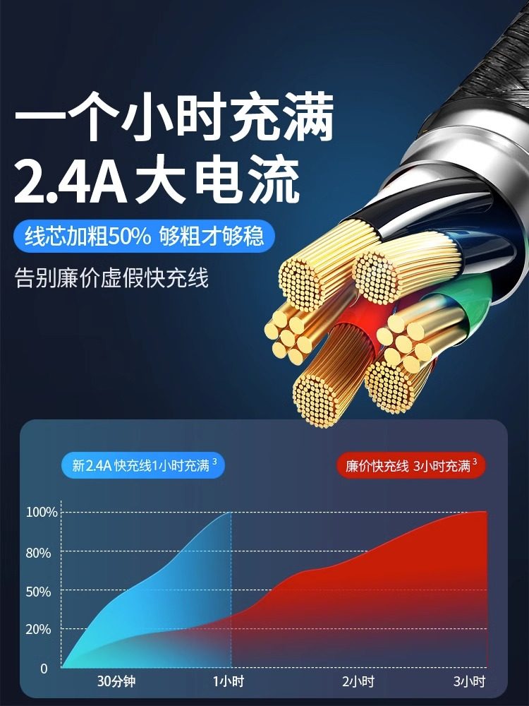 超级快充三合一数据线通用充电线适用苹果荣耀华为OPPO小米VIVO手机通用车载一拖三数据线透明芯片type-c带灯