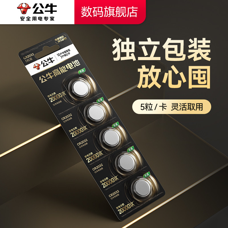 【3年内没电免费换新】公牛汽车钥匙电池cr2032纽扣电池汽车遥控钥匙电池大容量适用吉利大众奥迪奔驰宝马