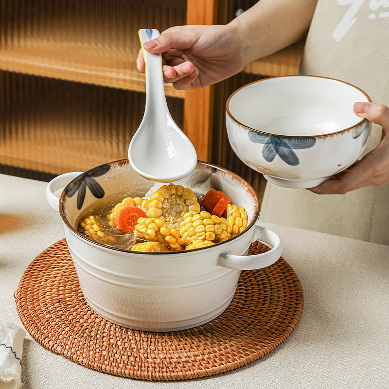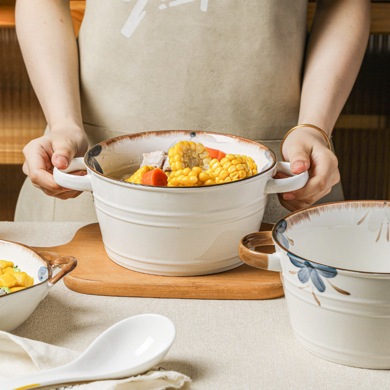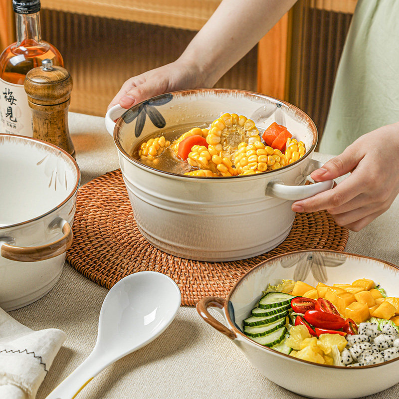 日式双耳汤碗家用8寸高级感陶瓷大碗ins风汤盆大号2022新款泡面碗
