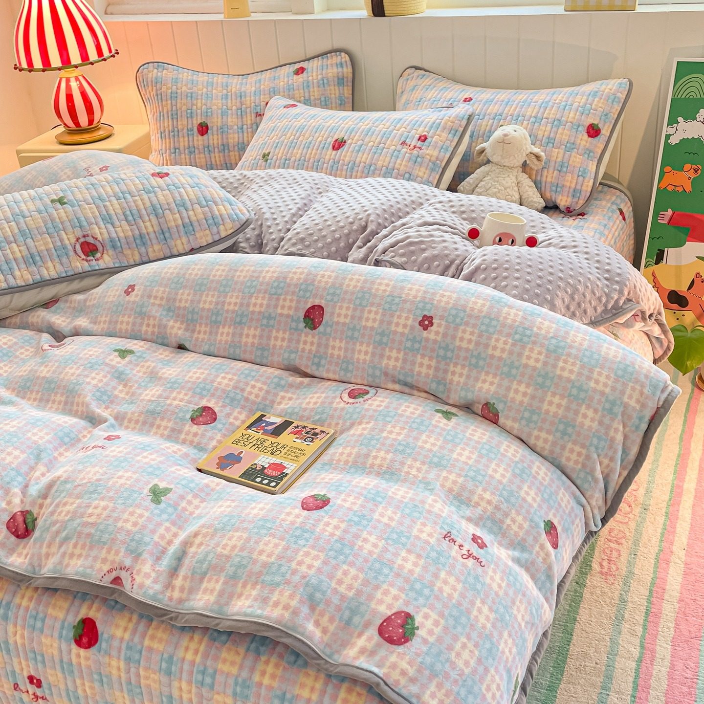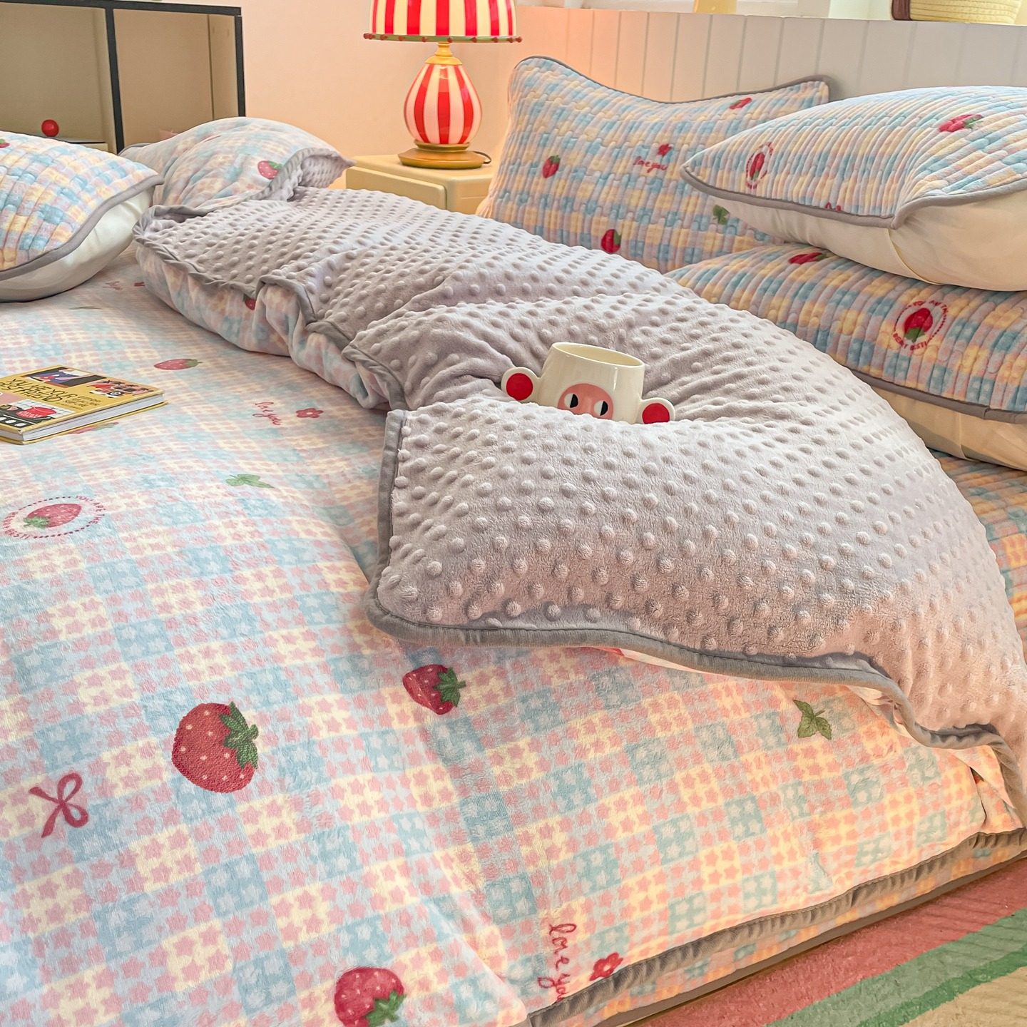 2025新款保暖豆豆绒床盖款四件套小清新牛奶绒被套罩冬季床上用品