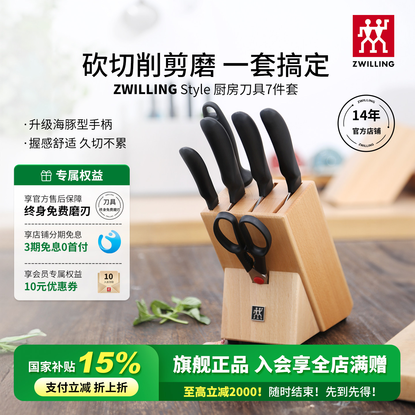 德国双立人刀具7件套厨房家用套刀菜刀砍骨刀水果刀磨刀棒官方