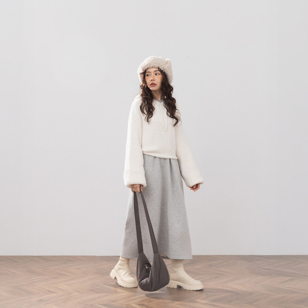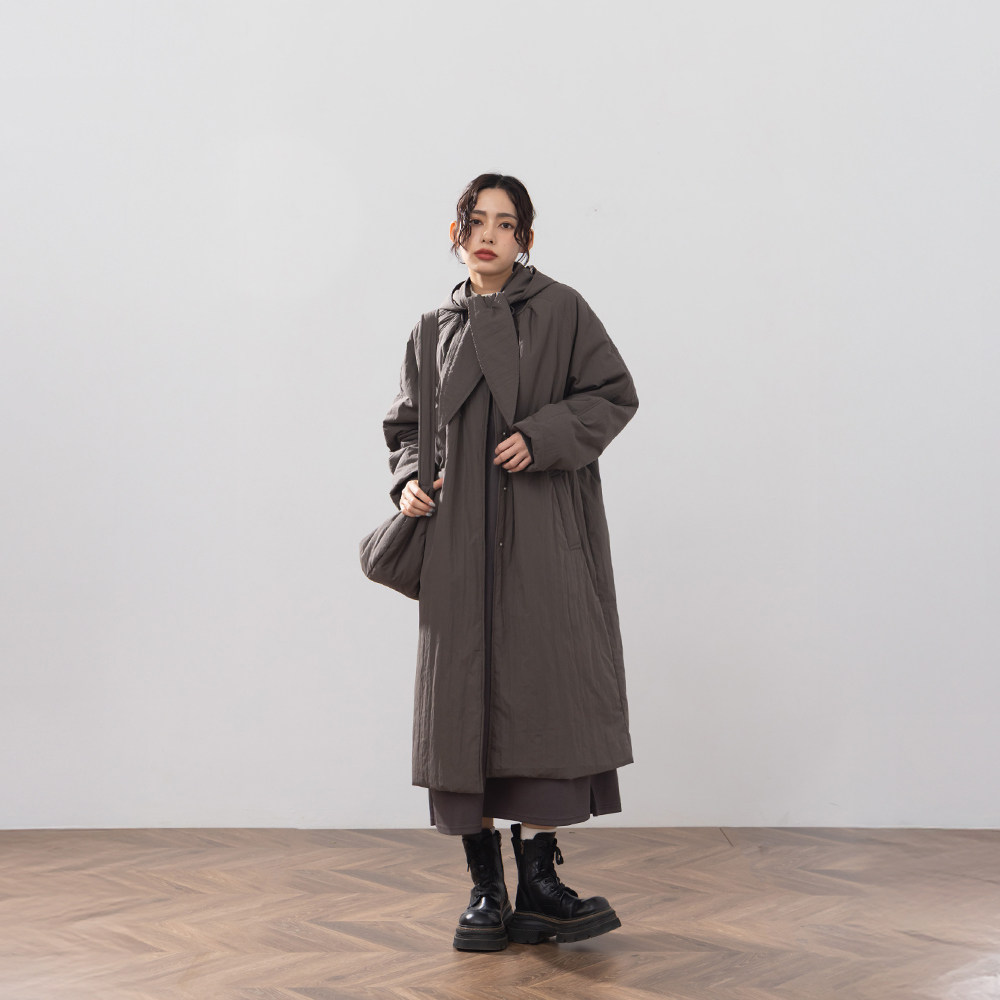 QUEENSHOP 2025秋冬新品女装休闲圆领落肩造型宽版连衣裙01087145