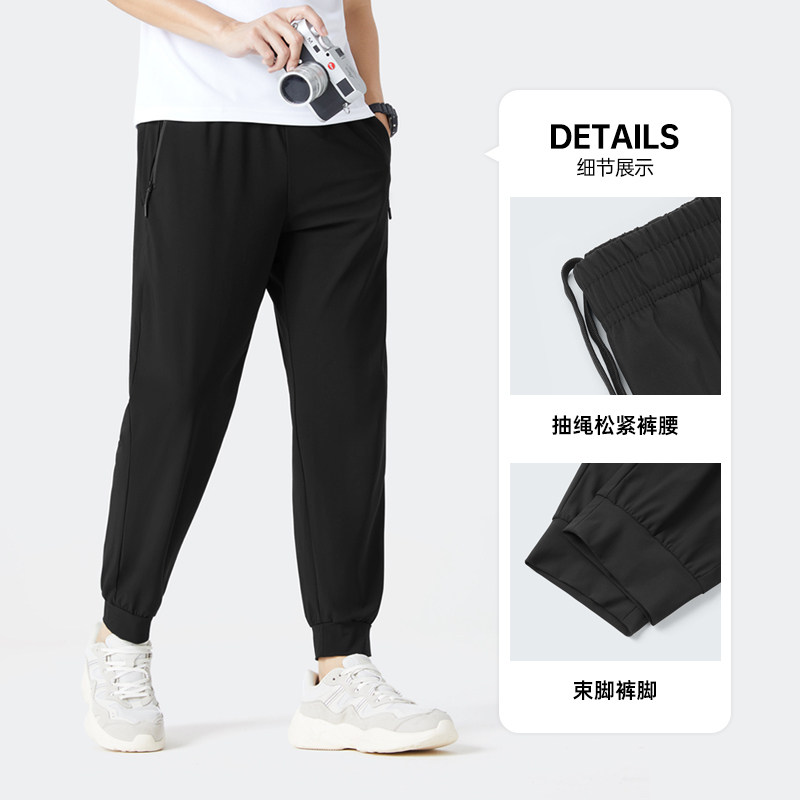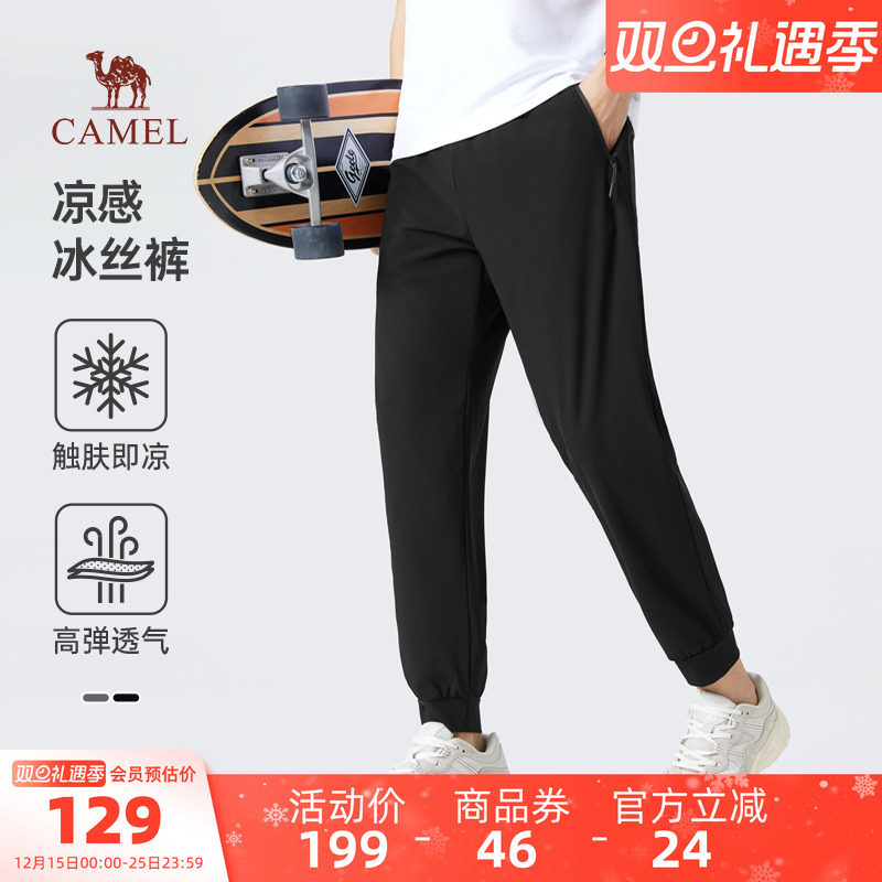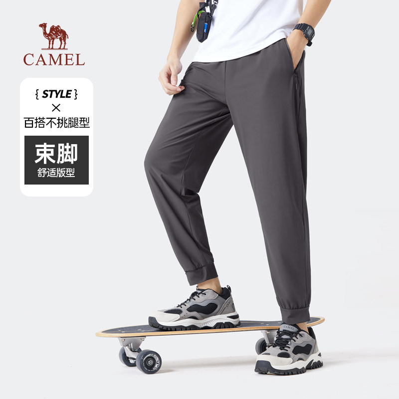 骆驼男装凉感冰丝裤休闲裤男户外透气弹力运动裤轻薄束脚裤子男士