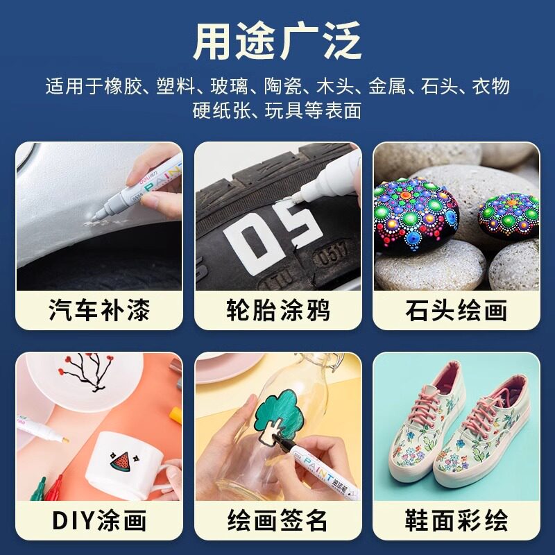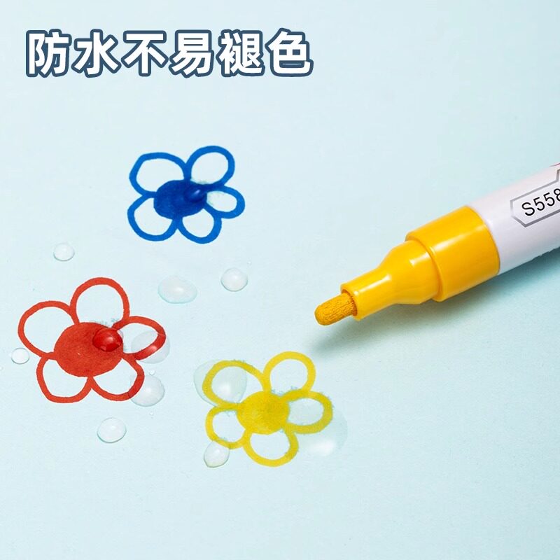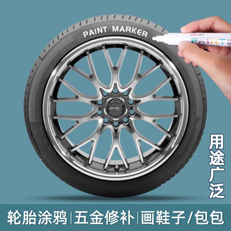 得力油漆笔白色记号笔防水防油补漆笔速干白漆笔金色银色涂鸦笔彩色工业汽车专用黑色轮胎红色不易掉色油性笔