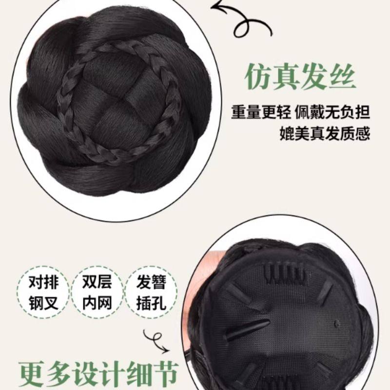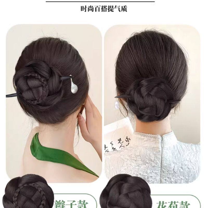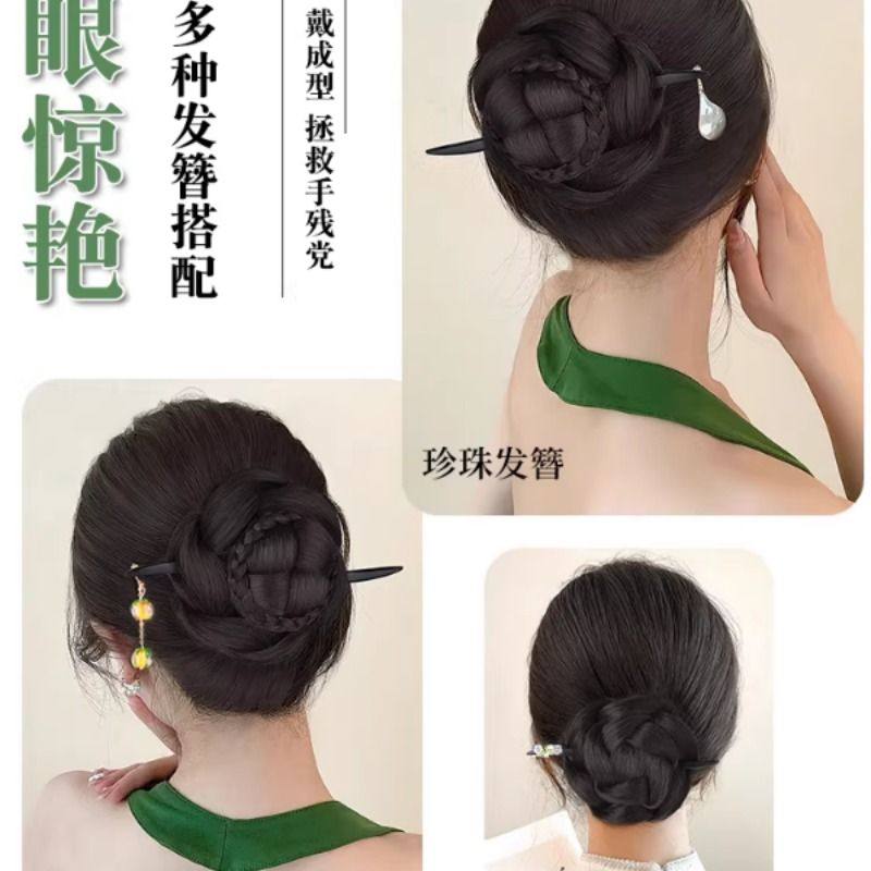 新中式丸子头假发女花苞发簪盘发后脑垫发汉服古风发髻旗袍假发包