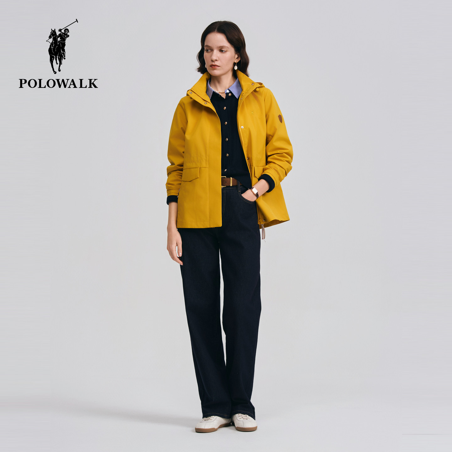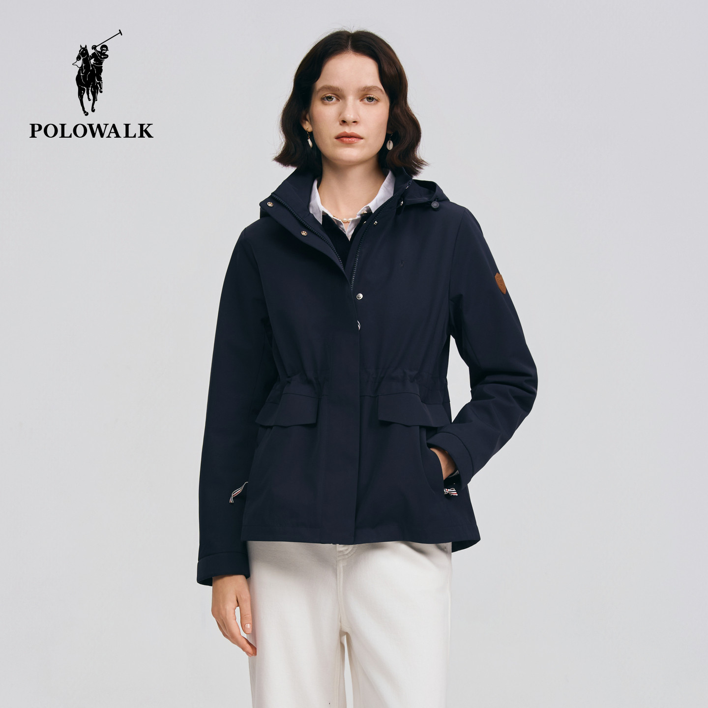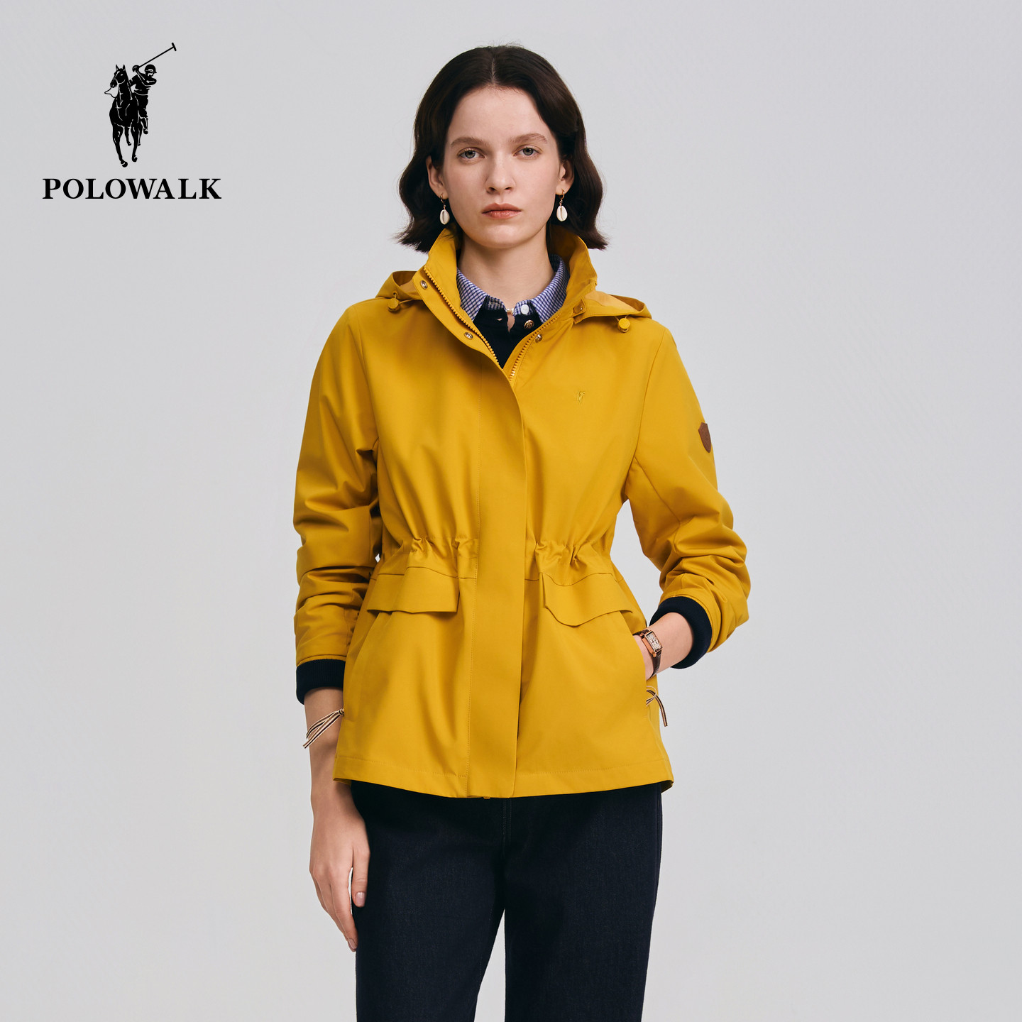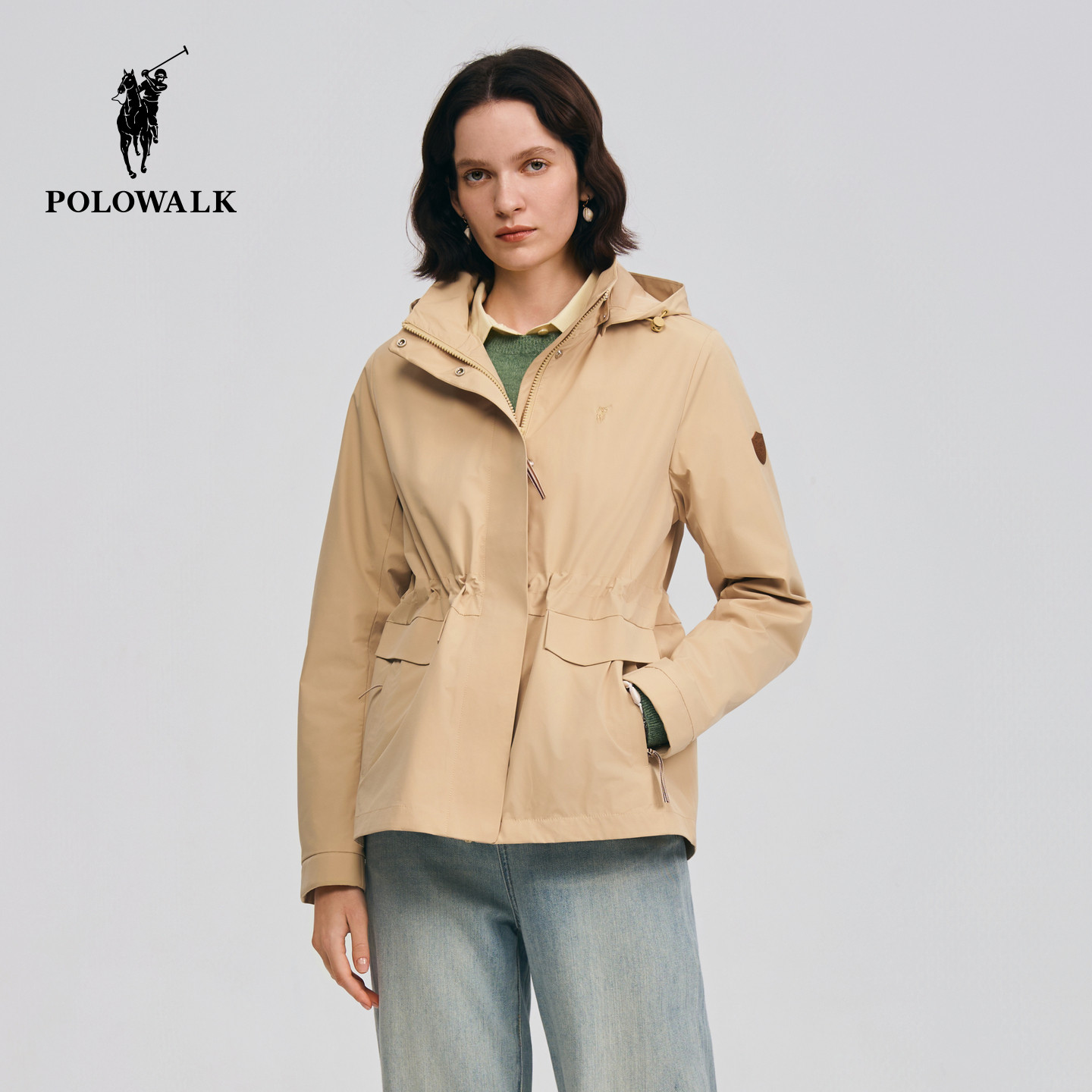 POLOWALK女装外套2026春季新款女士通勤外套连帽收腰显瘦夹克上衣
