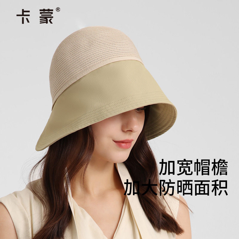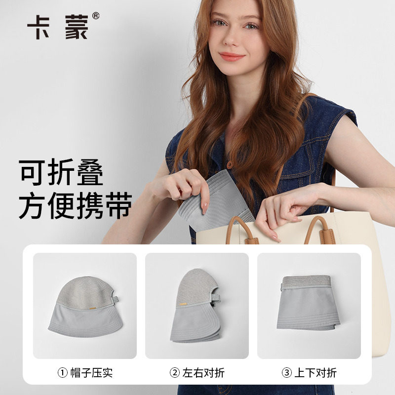 卡蒙可折叠环绕式遮脸防晒渔夫草帽女夏海边防紫外线遮阳帽显脸小