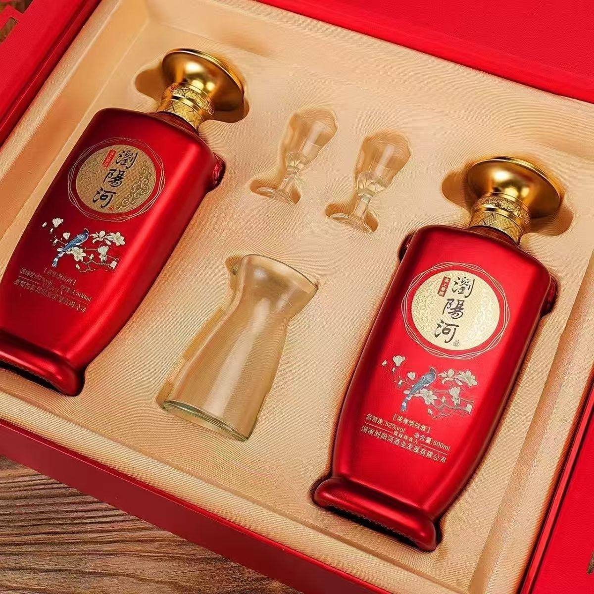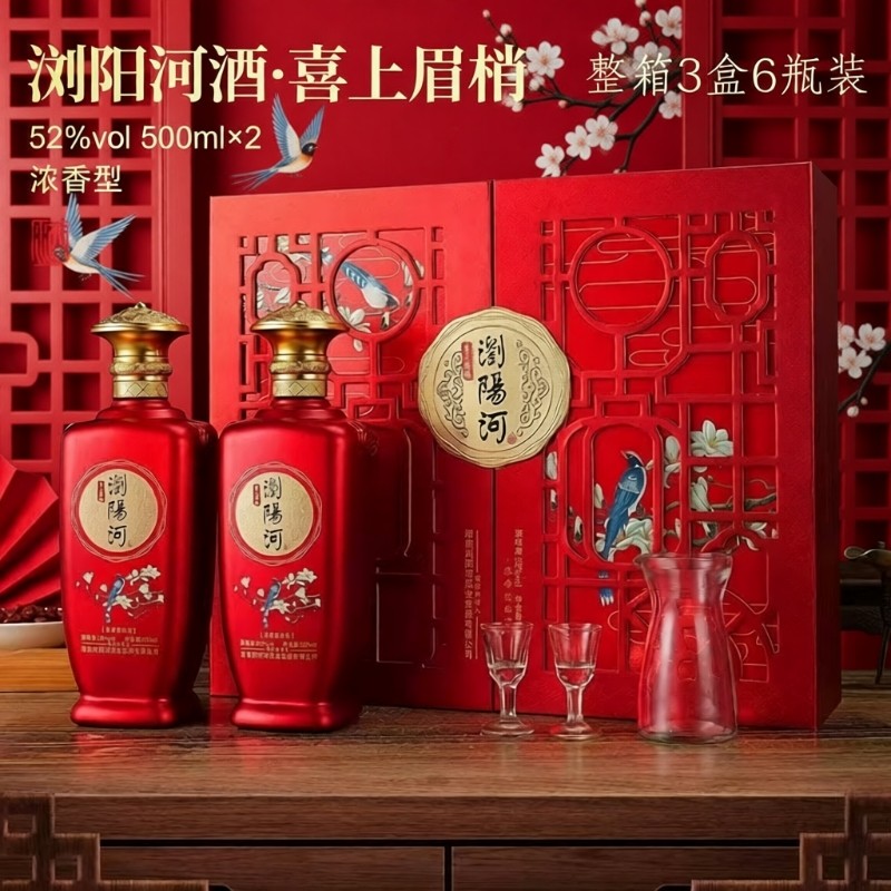 浏阳河酒喜上眉梢浓香型52度高档礼盒装500ml*66瓶整箱送礼喜宴