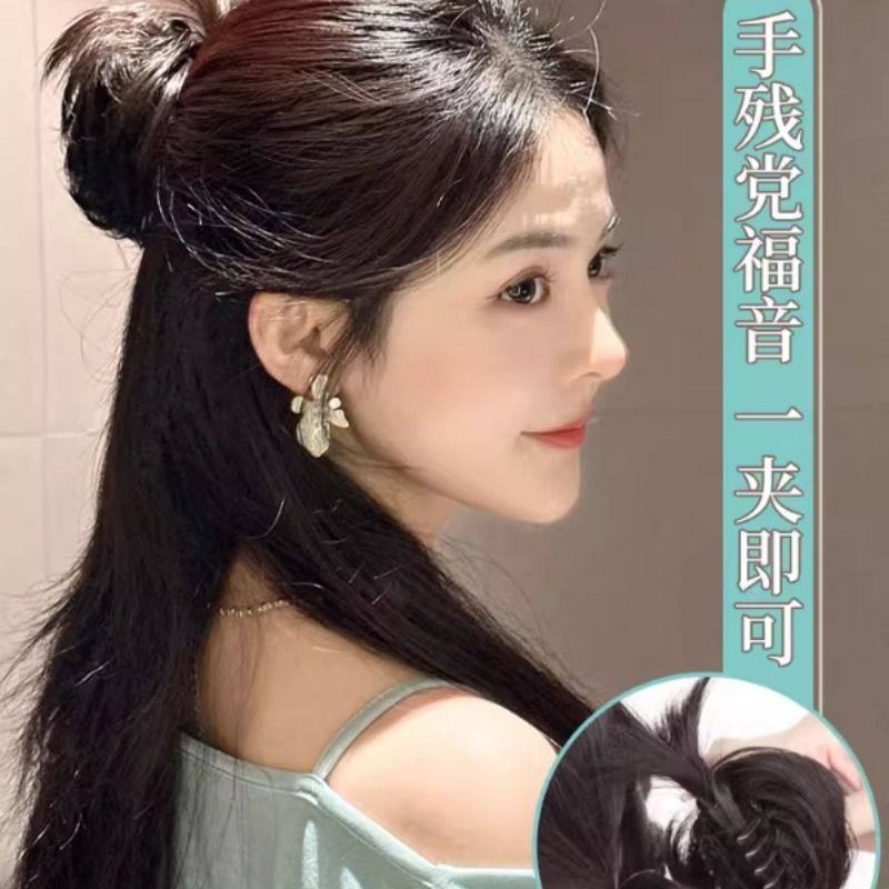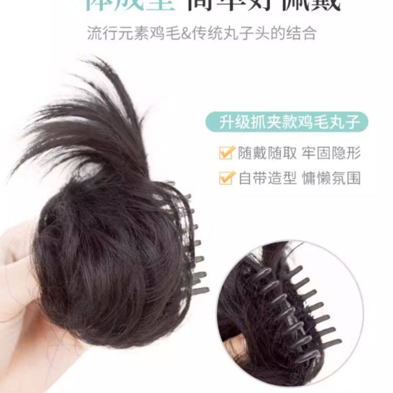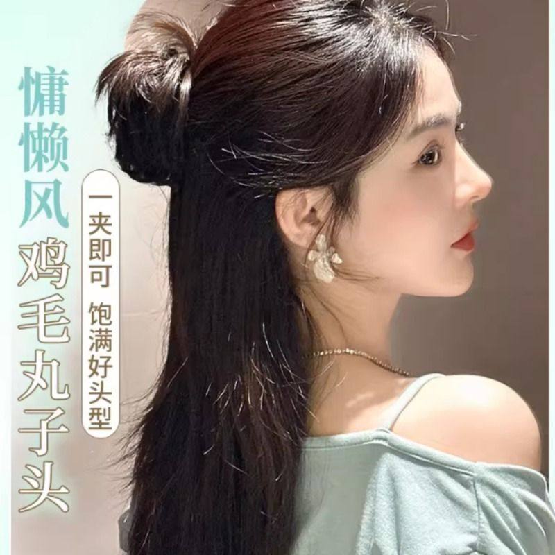 鸡毛丸子头假发抓夹半扎增发量神器后脑勺发包鸡窝花苞头盘发发圈