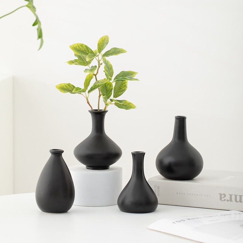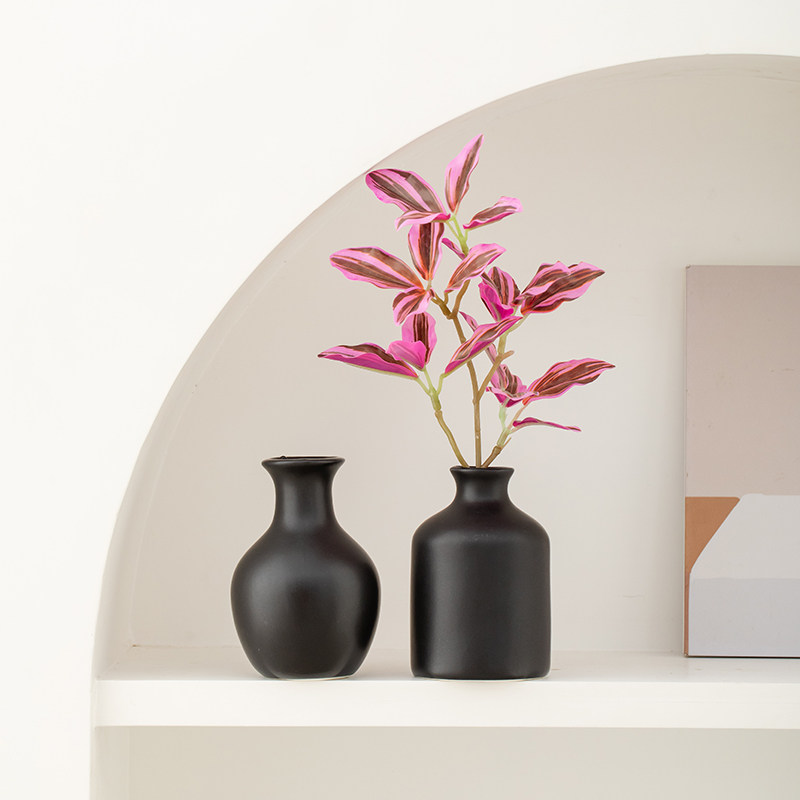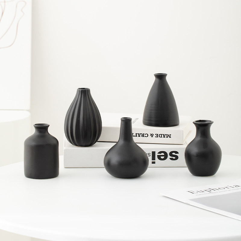 黑色迷你陶瓷花瓶高级感客厅桌面装饰水培插花摆件电视柜玄关卧室