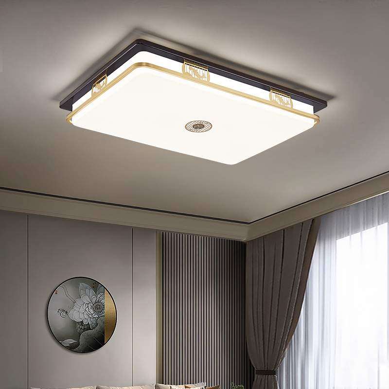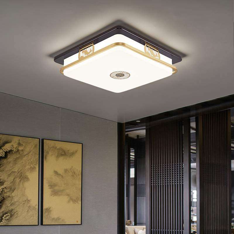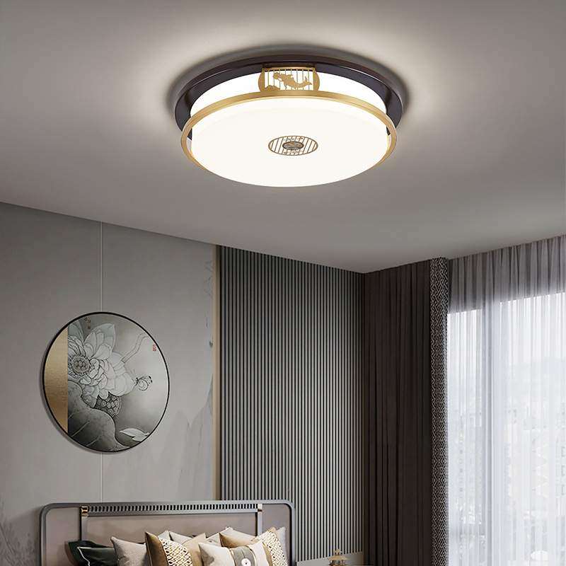 新中式吸顶灯全铜实木LED客厅灯卧室书房餐厅大气家用锦鲤款灯饰