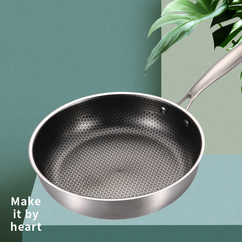 厂家批发不锈钢家用平底煎锅不粘锅深煎炒菜锅不沾煎牛排锅