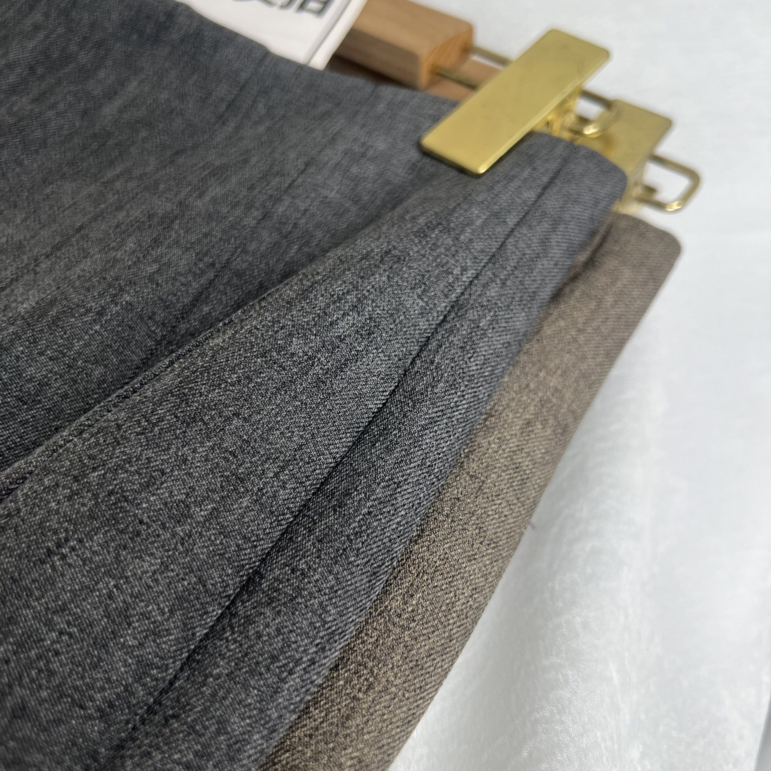 夏莫卡斜门襟灰色西装裤女秋冬后松紧显瘦弧形裤绵羊毛阔腿裤6855