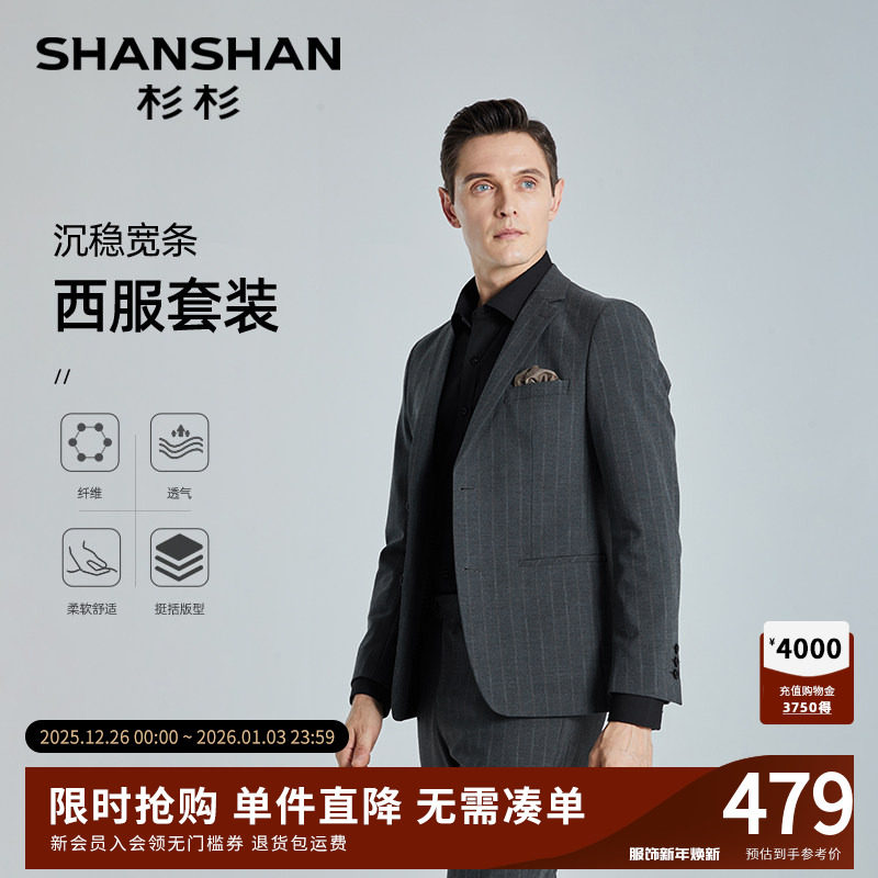SHANSHAN杉杉西服套装男士秋季条纹结婚礼服正装商务休闲西装男