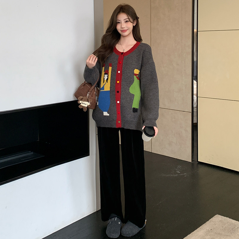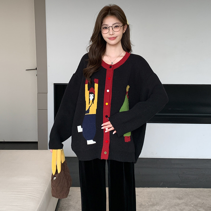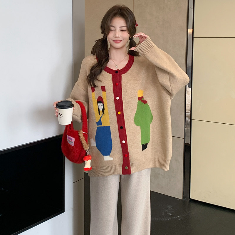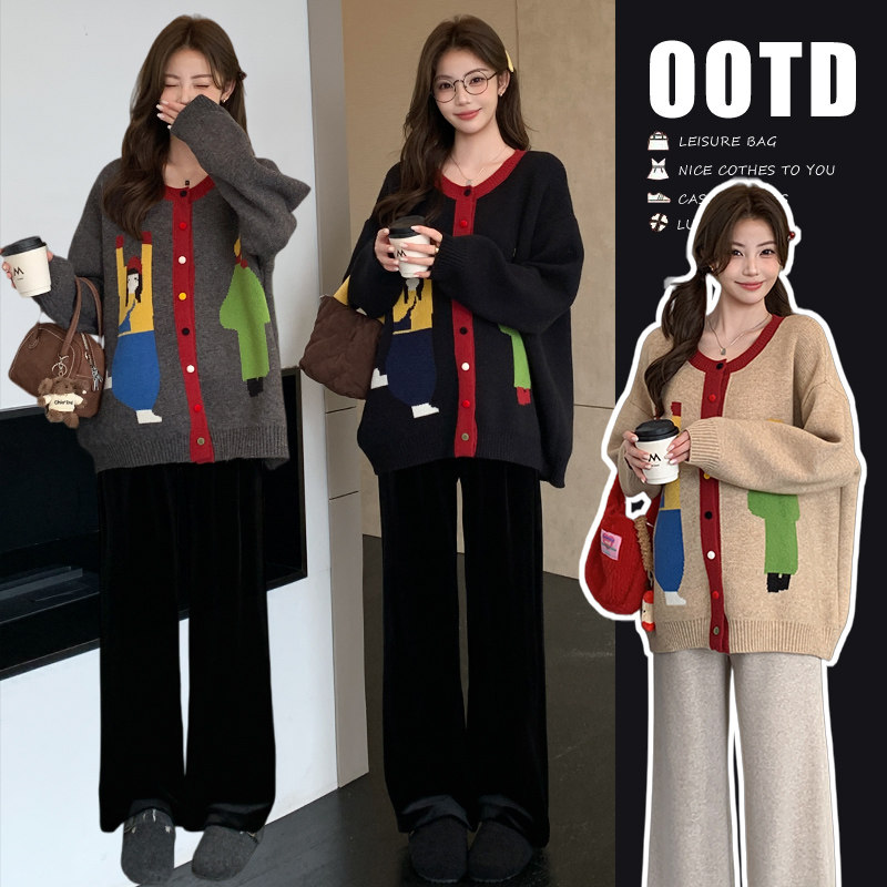 婧麒孕妇装新款加厚撞色上衣外套时尚宽松冬装孕期孕妇毛衣女秋冬