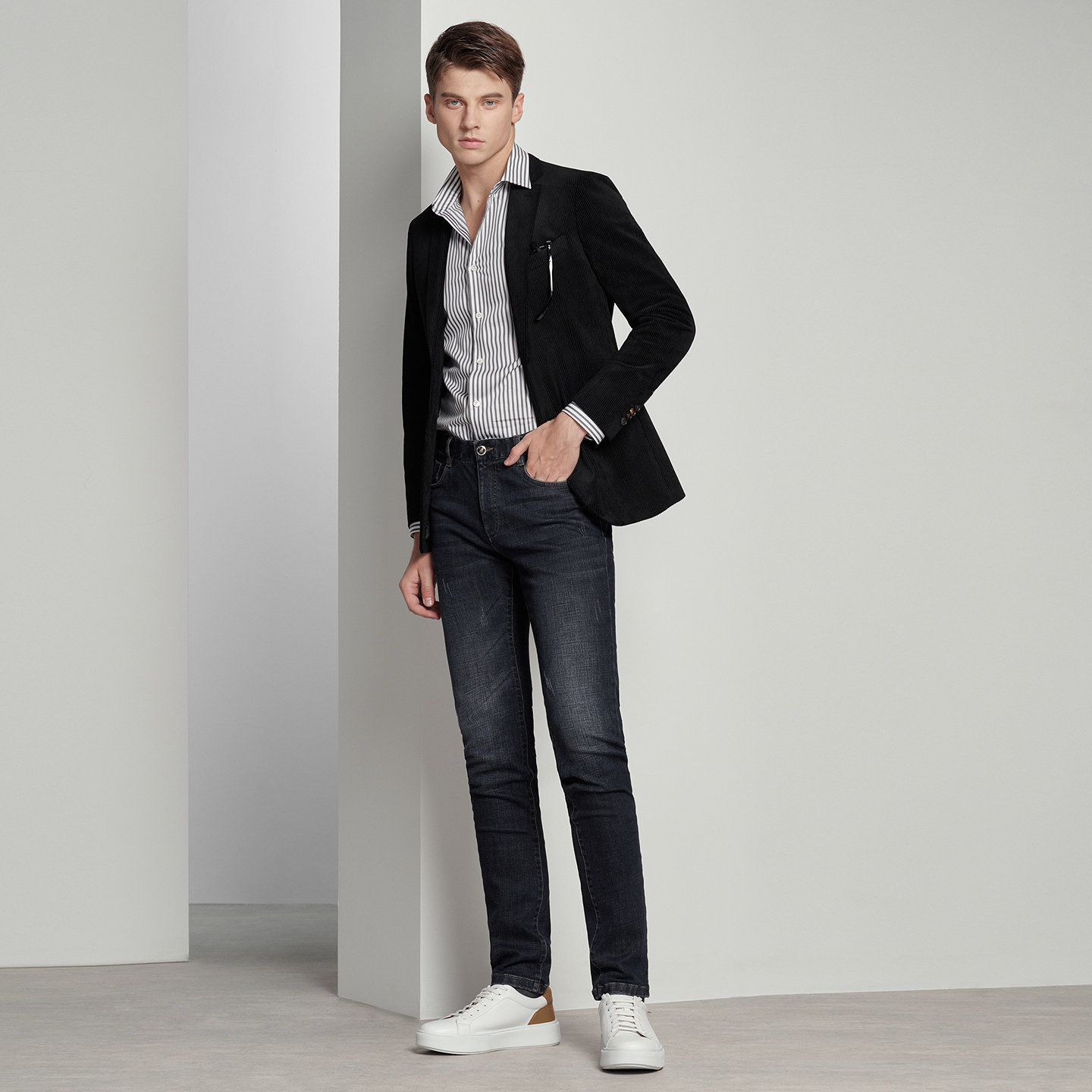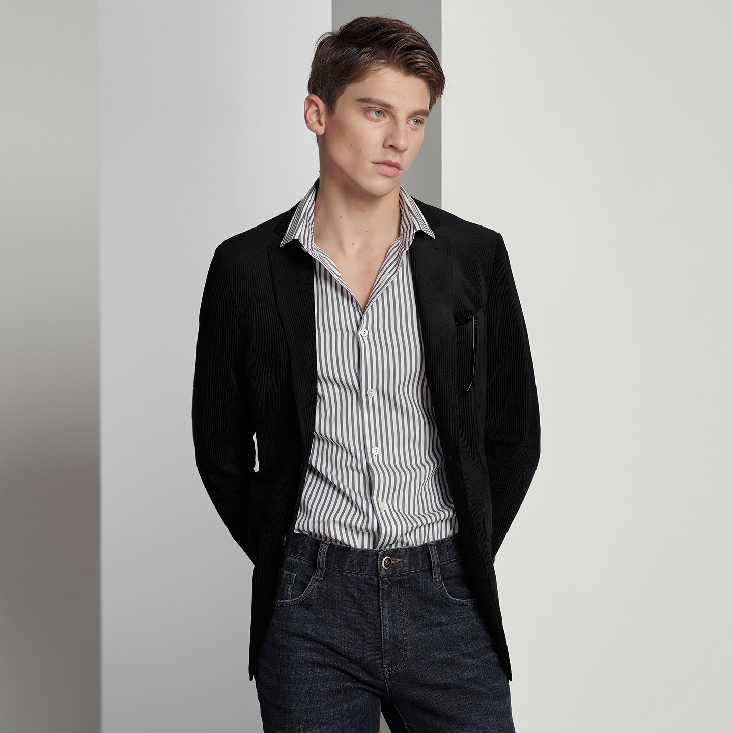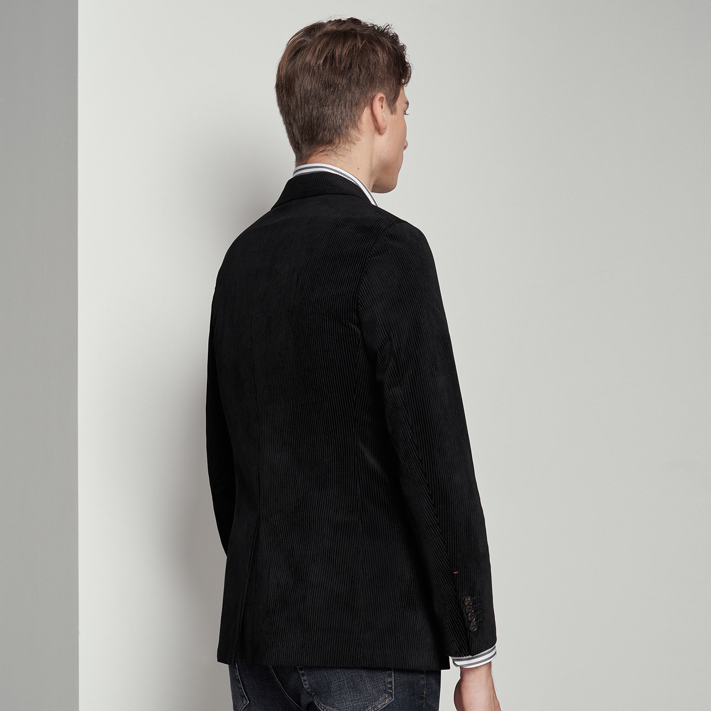 JODOLL/乔顿灯芯绒西服男士潮流商务休闲平驳领黑色小西装