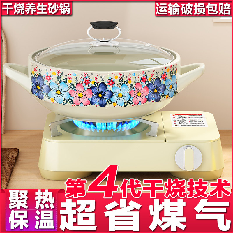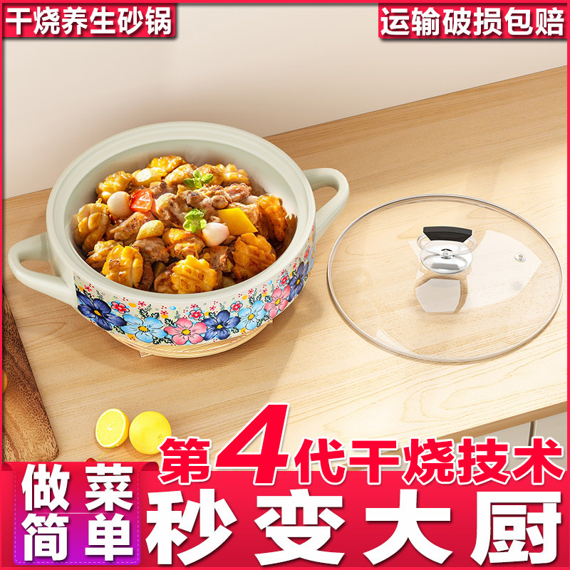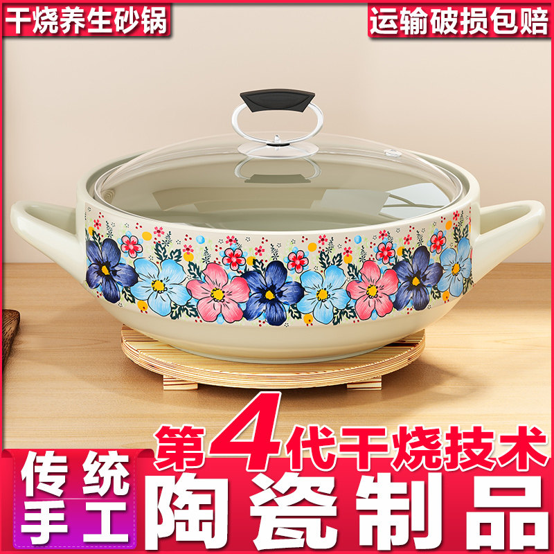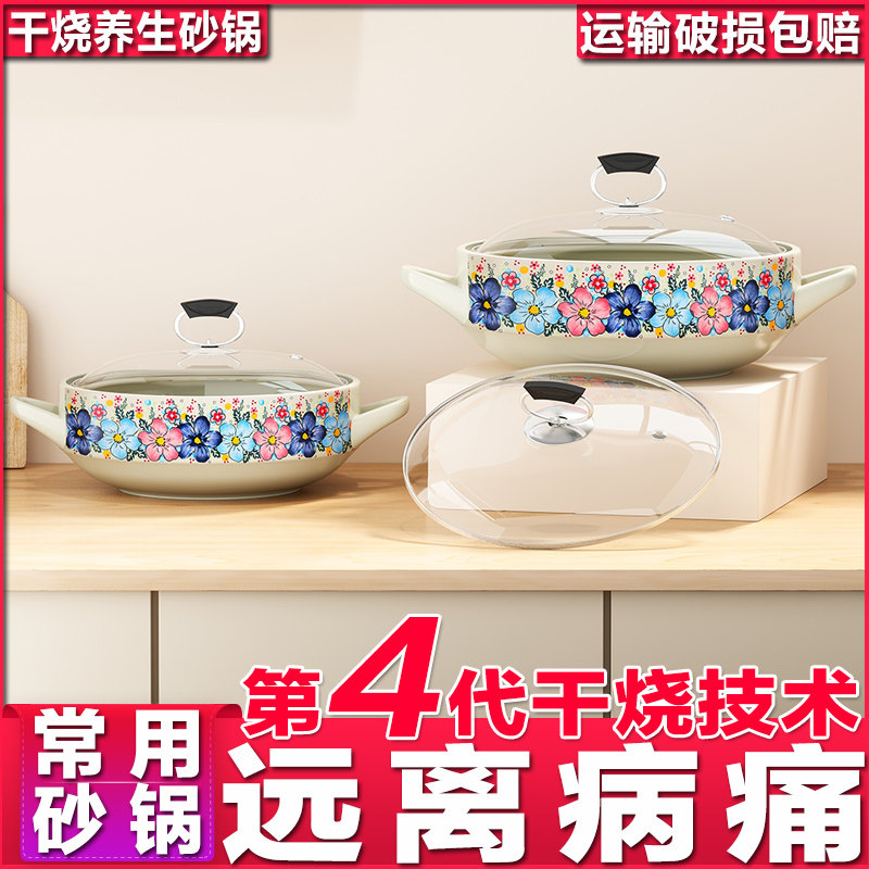 【波兰佳人】宽口浅锅砂锅煲汤家用炖炒焖锅明火干烧不裂陶瓷沙锅