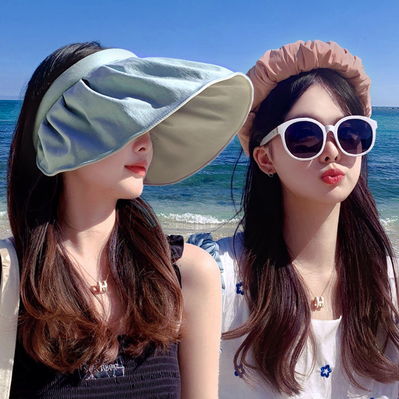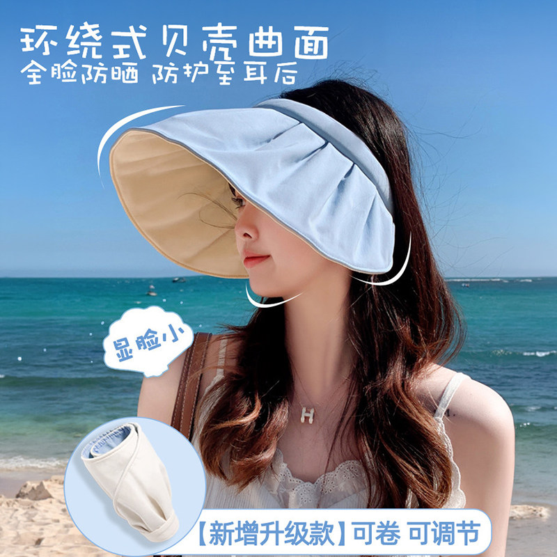 防晒帽女防紫外线大帽檐贝壳遮阳帽空顶帽子太阳帽遮脸可折叠夏天