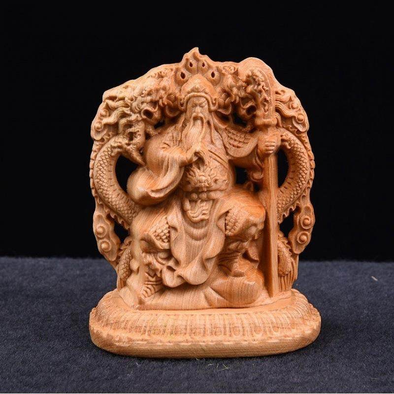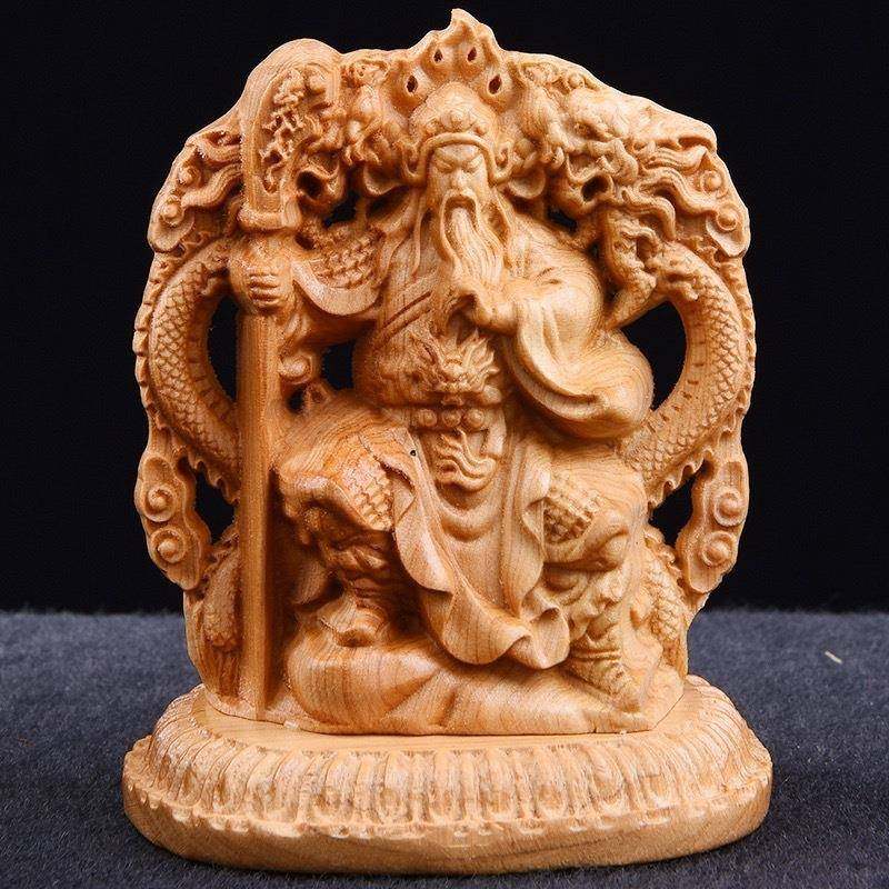 崖柏木雕关公汽车像摆件 实木关二爷双面雕刻车载像车载