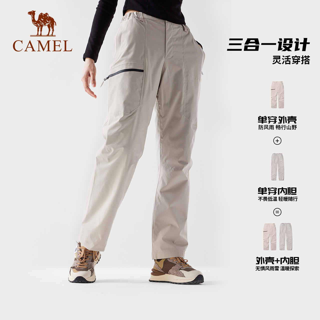 骆驼户外三合一冲锋裤女加绒抓绒内胆保暖长裤防暴雨防风登山裤男