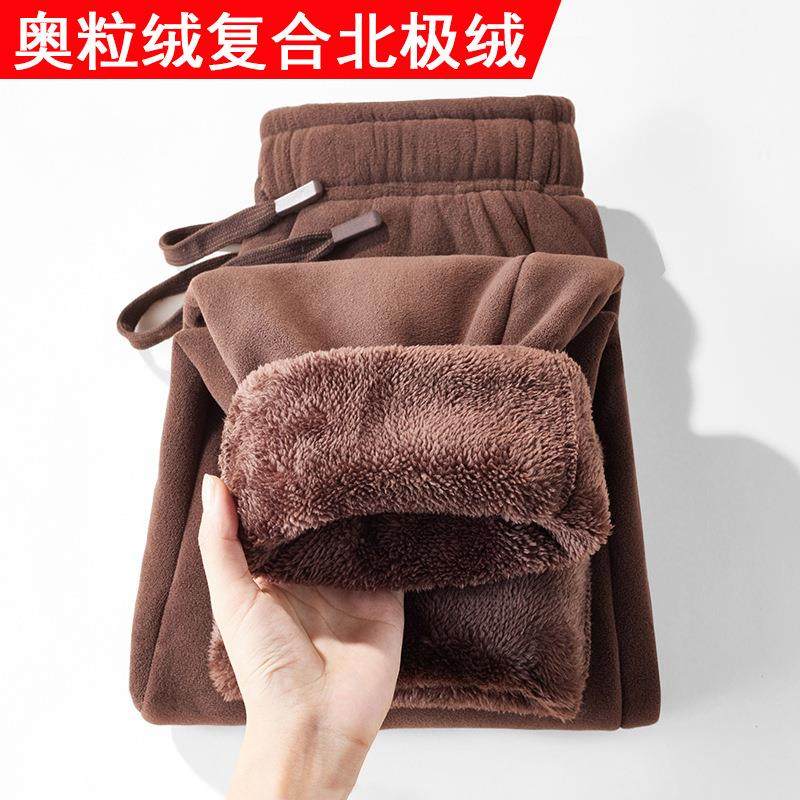 双面绒休闲裤男抓绒裤奥粒绒针织运动裤冬季纯色束脚卫裤新款羊绒