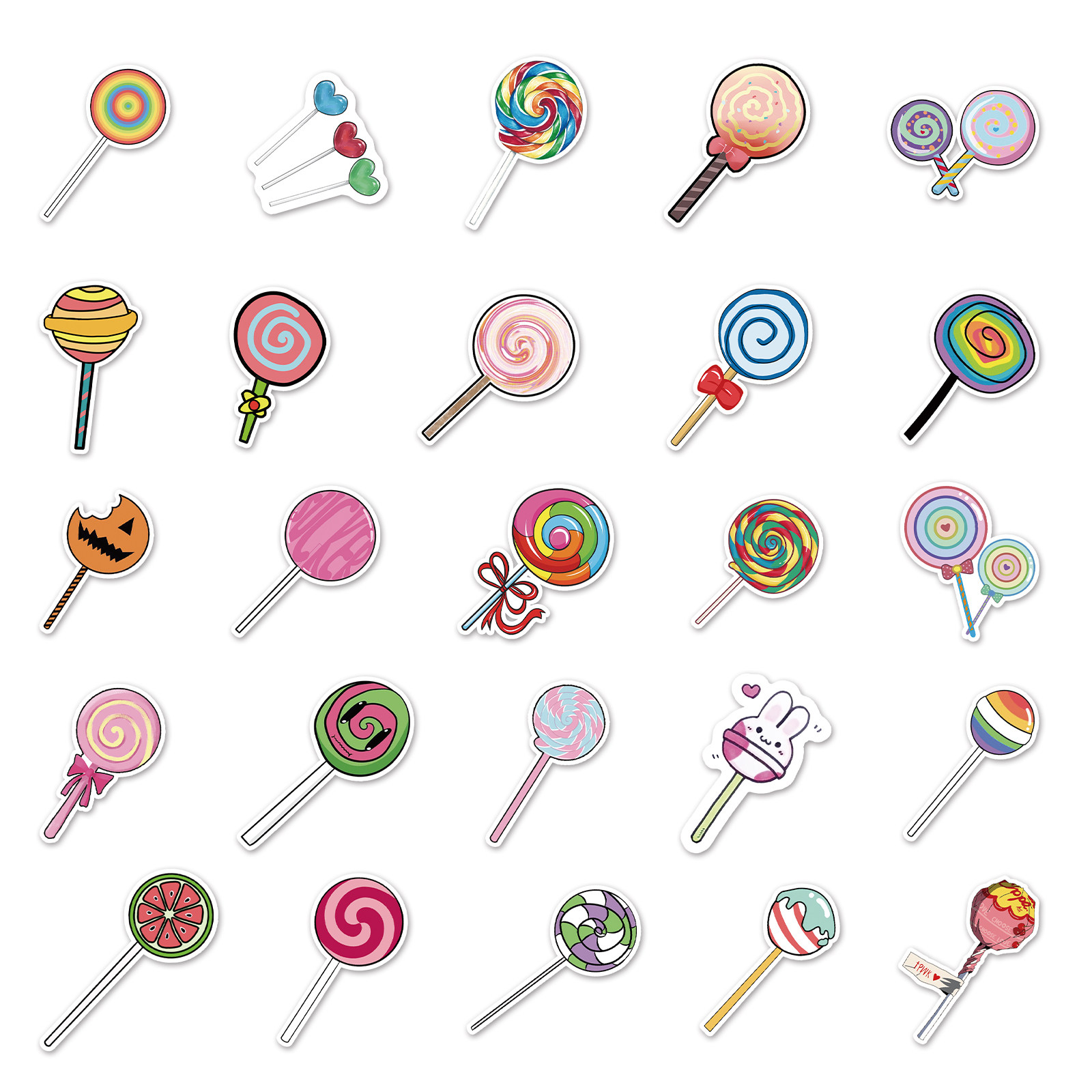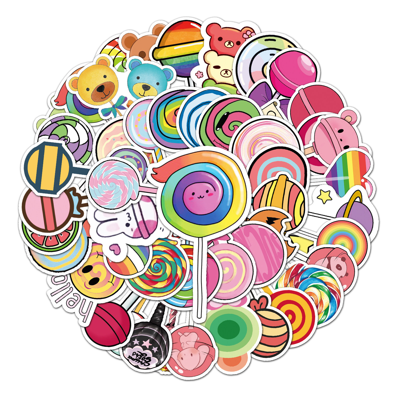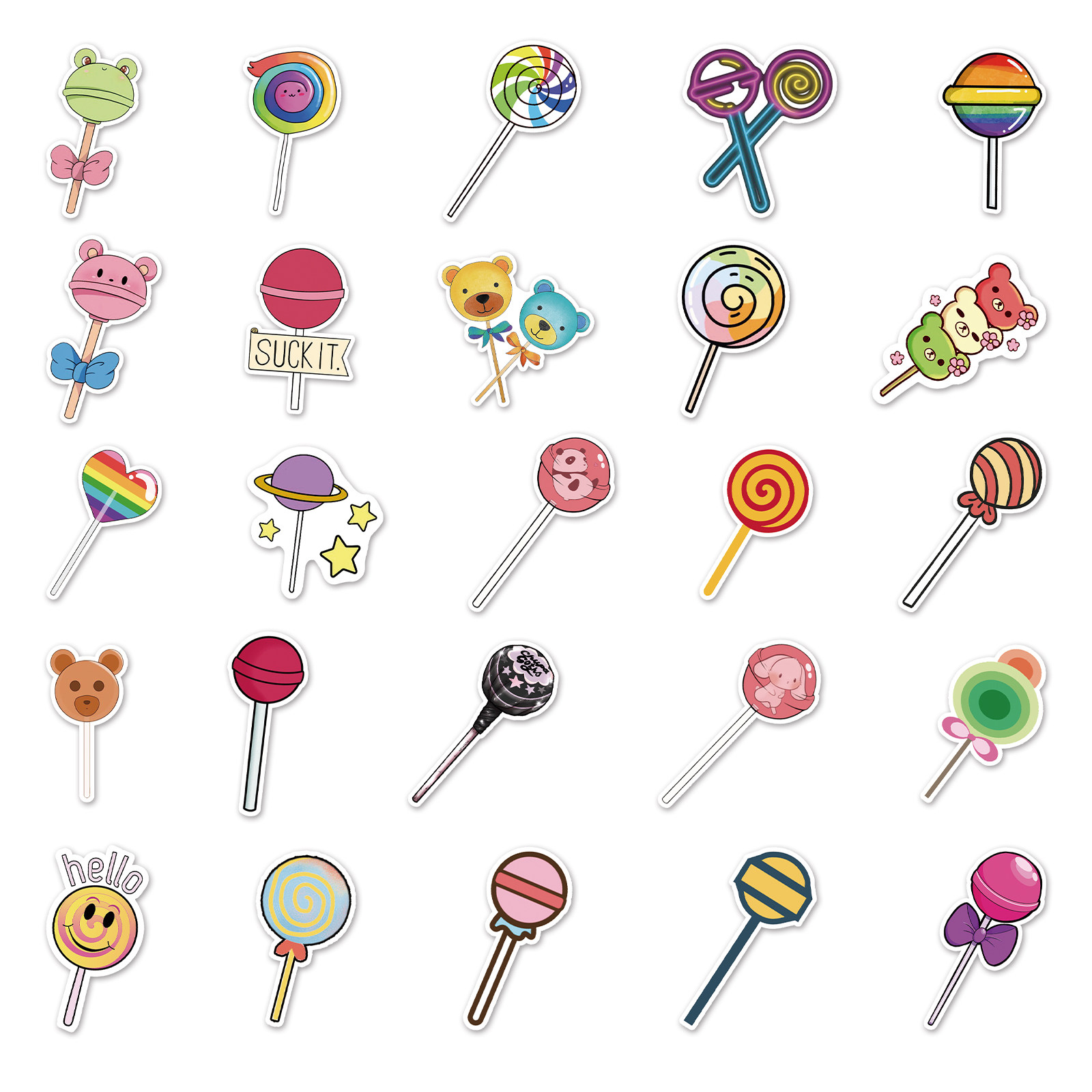 100张棒棒糖贴纸可爱卡通七彩糖果创意涂鸦素材装饰小贴画手账本diy咕卡笔记本手机壳头盔旅行箱平板防水贴纸