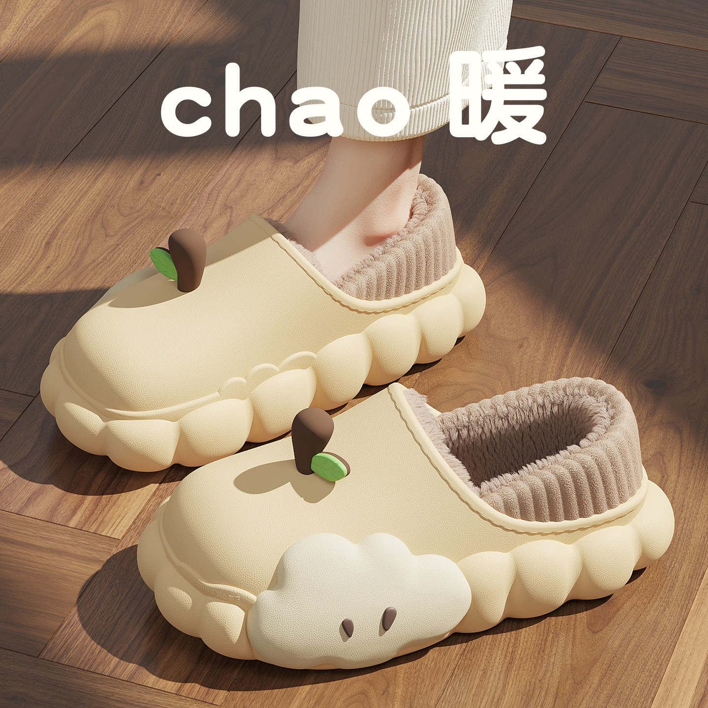 亚束棉拖鞋男士破茧外穿厚底增高情侣大码室内居家冬季保暖女新款